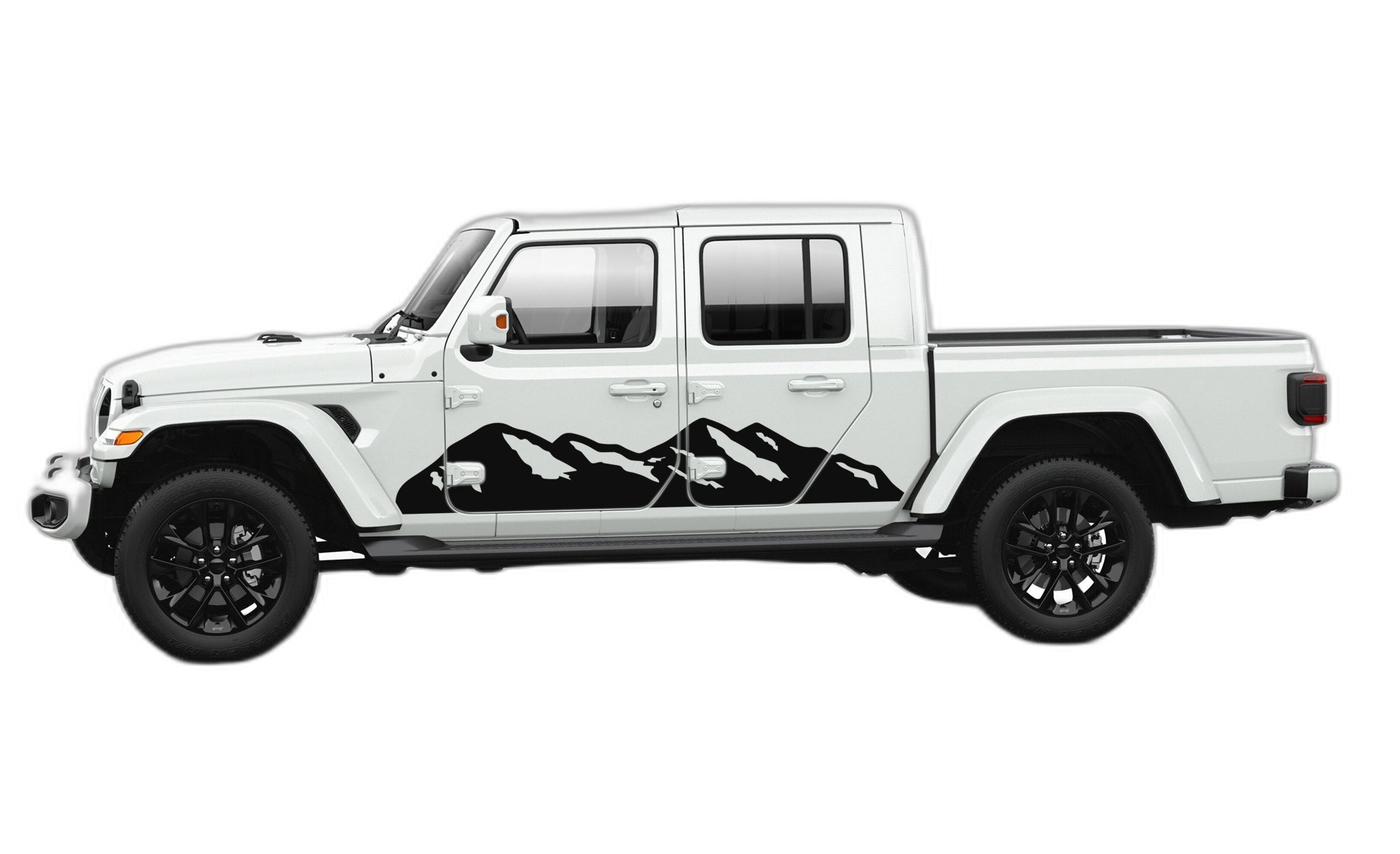 Adventure mountains side graphics decals compatible with Jeep Gladiator JT adds a bold custom styling touch to your Jeep Gladiator with a clean motorsport-inspired decal look. This design is intended for the listed fitment and works well for drivers who want sharper side profile styling without a full wrap. The graphic is suited for enthusiasts who value a strong visual upgrade, easy maintenance, and a finish that stands out on the street or at events. Always confirm your vehicle generation and prepare the surface correctly before installation for the best result. This product is a great option for refreshing the appearance of your build while keeping the install focused, practical, and visually aggressive.