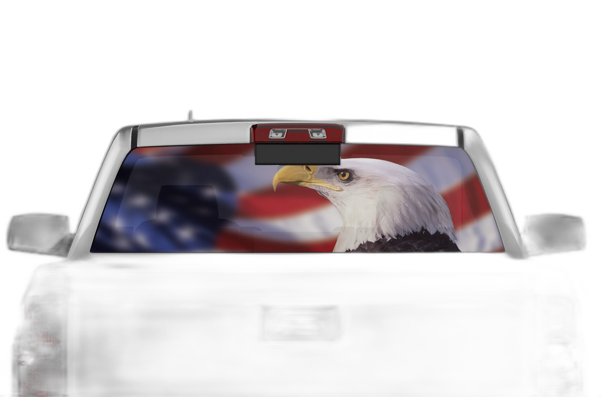 Combine classic American imagery with your truck’s style using this eagle and flag rear window decal. Specifically designed for the 2014-2018 Chevrolet Silverado, this graphic lets you show your pride while driving safely.