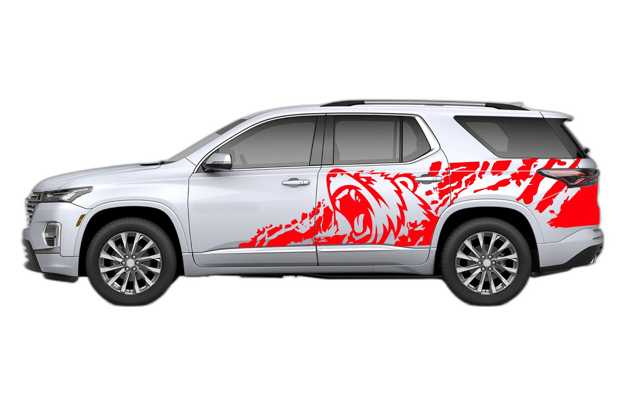 Bear splash side graphics decals compatible with Chevrolet Traverse 2018-2023 adds a bold custom styling touch to your Chevrolet Traverse with a clean motorsport-inspired decal look. This design is intended for the listed fitment and works well for drivers who want sharper side profile styling without a full wrap. The graphic is suited for enthusiasts who value a strong visual upgrade, easy maintenance, and a finish that stands out on the street or at events. Always confirm your vehicle generation and prepare the surface correctly before installation for the best result. This product is a great option for refreshing the appearance of your build while keeping the install focused, practical, and visually aggressive.