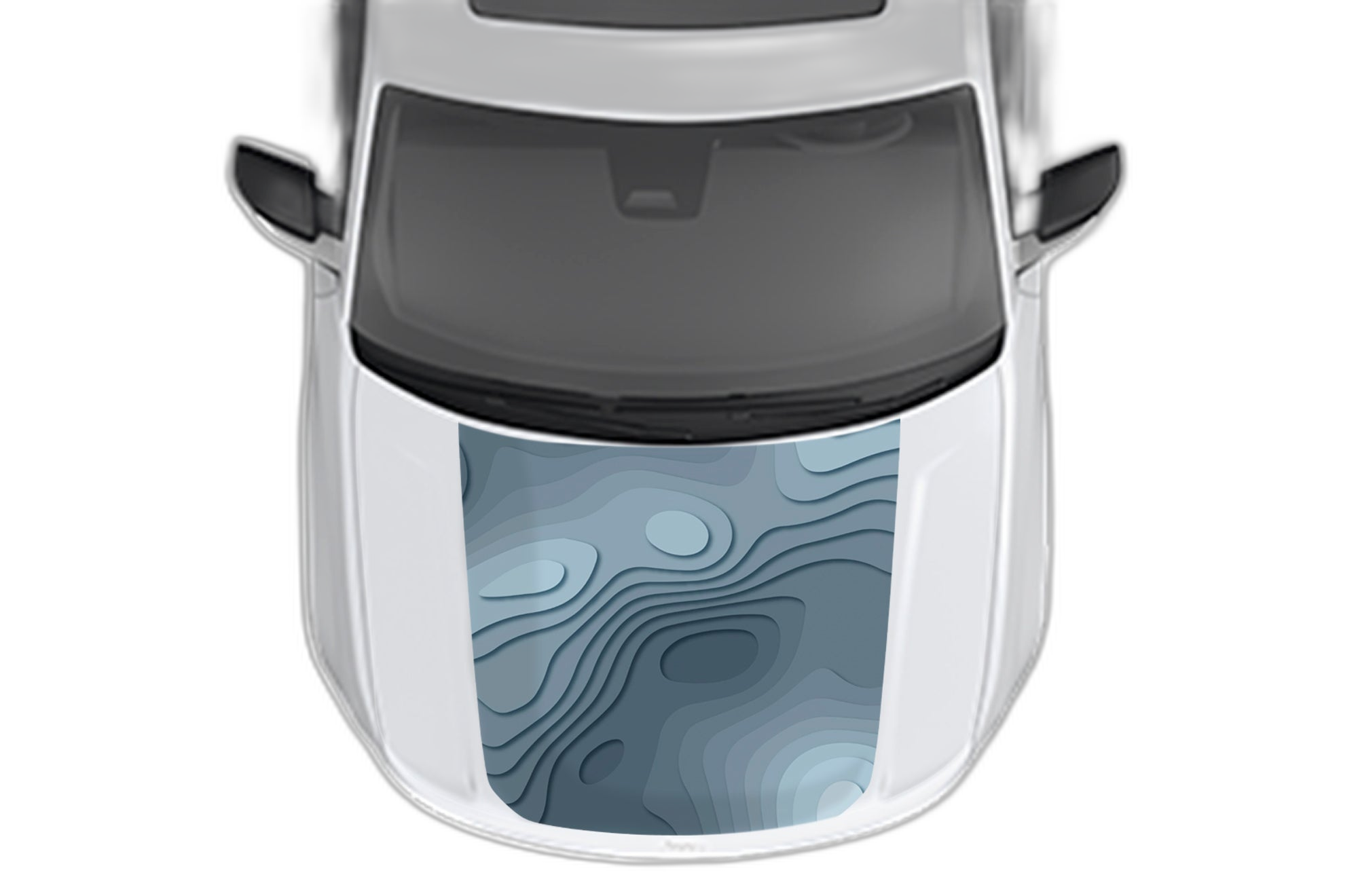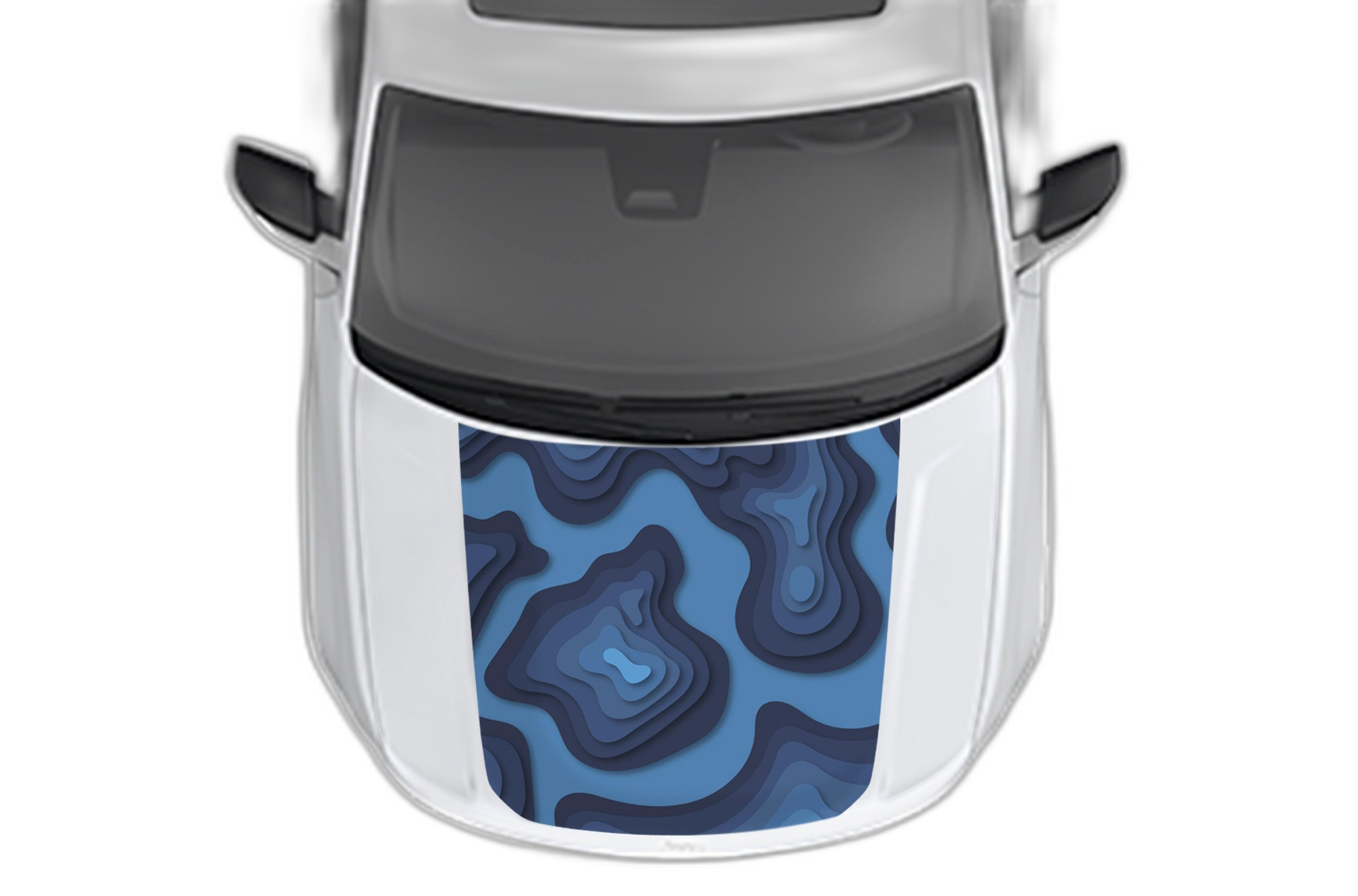 Enhance your Jeep Grand Cherokee with these custom blue topographic hood graphics.