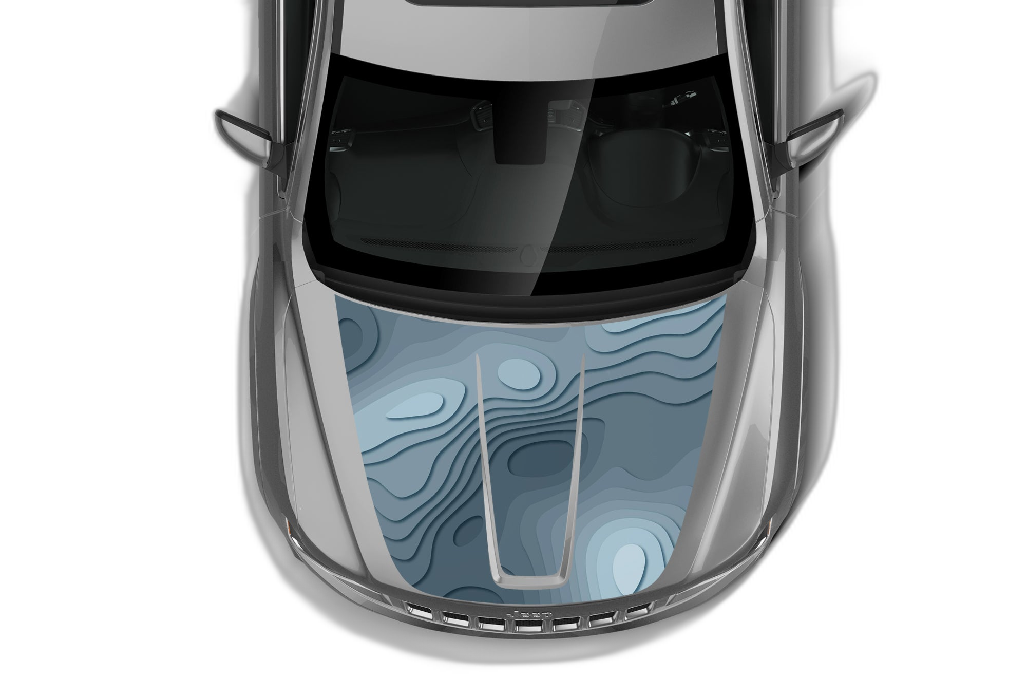 Add a modern touch to your vehicle with these blue-toned topographic decals. They are designed to blend perfectly with the hood structure of your Jeep Grand Cherokee.