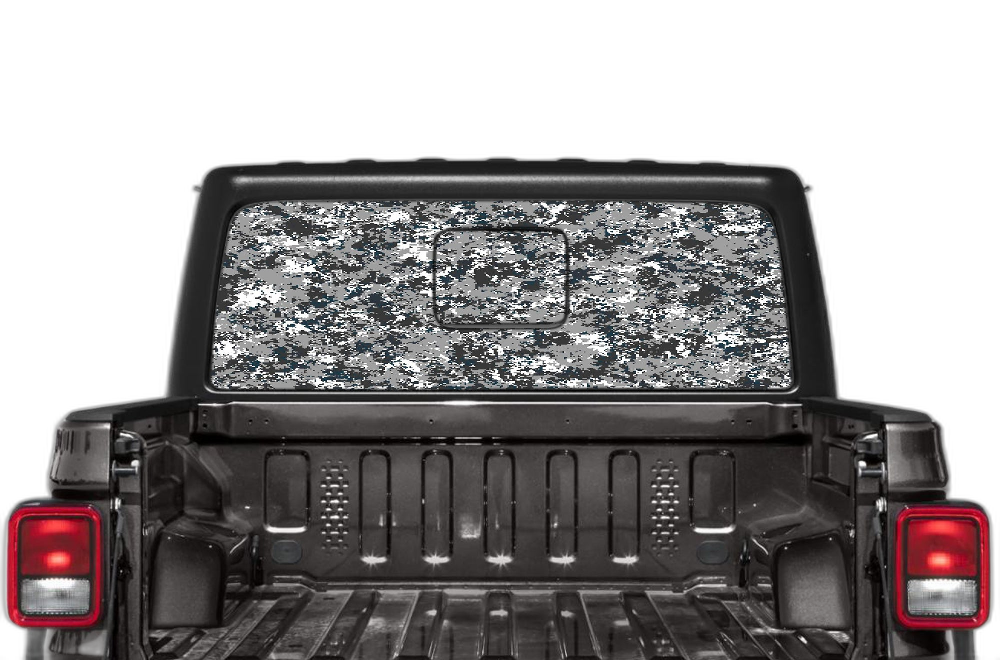 Take your Jeep Gladiator JT deep into the wild with our camo perforated rear window decal. This stealthy, forest-inspired pattern provides a rugged, outdoor-ready look that perfectly complements the Gladiator’s off-road DNA. Using advanced micro-perforated vinyl, this graphic allows you to display the full camo pattern from the outside while maintaining perfect visibility from within the cabin. The material is engineered to survive harsh weather, protecting your window from UV rays while keeping your interior cool. Precision-cut for the Gladiator’s rear glass, the application process is simple, resulting in a seamless and professional-grade finish. These decals are designed for the dedicated outdoorsman who values both style and utility, providing a tactical aesthetic that fits right in on any trail. Durable and fade-resistant, this camo graphic keeps your truck looking sharp through mud, dust, and sun. Upgrade your vehicle with this essential, long-lasting accessory that merges tactical design with modern material performance.