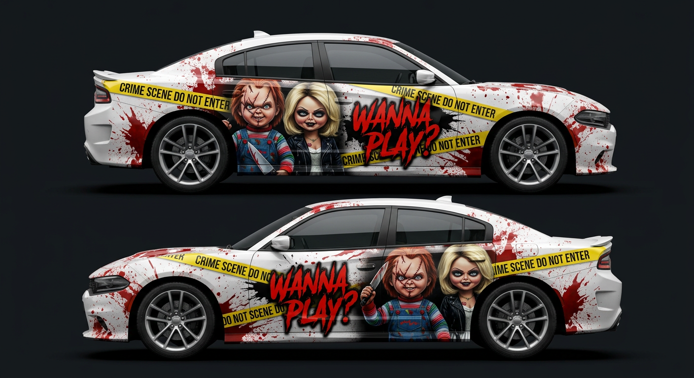 🔪❤️ Chucky & Tiffany Car Wrap – Wanna Play?