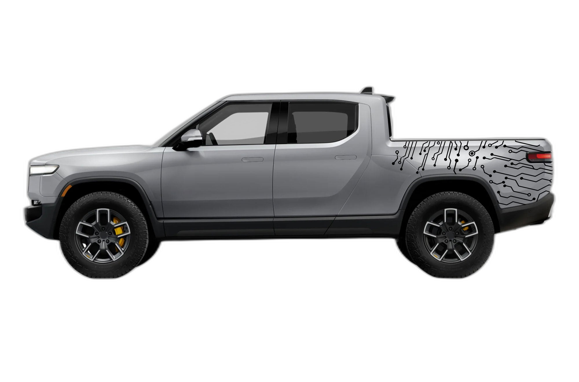 Celebrate the advanced technology of your electric truck with our Circuit Board bed decals for the Rivian R1T. These intricate, tech-focused graphics feature a stylized electronic grid that highlights the innovative engineering behind your vehicle. It is the perfect aesthetic choice for EV enthusiasts who appreciate the digital-age design language of the R1T. Our decals are produced using high-quality automotive vinyl, ensuring they remain sharp and vibrant through extreme weather and daily use. The material is UV-resistant and car wash safe, protecting your truck’s paint while adding a unique, futuristic layer of customization. Each decal set is precision-cut for an effortless fit, allowing for a professional look even if you are installing them yourself. Transform your R1T into a mobile piece of tech-inspired art and turn heads at every corner with these stunning, data-driven graphics.