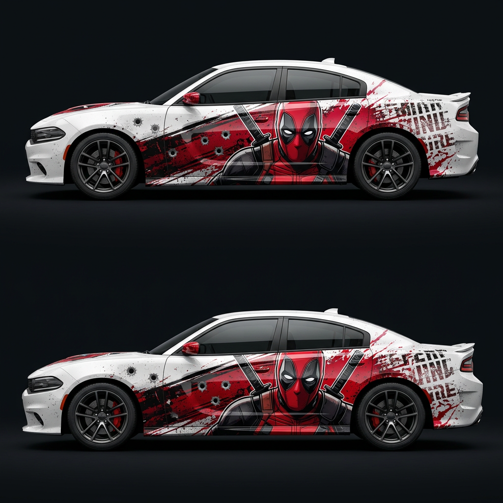 πŸ”«πŸ’₯ Deadpool Battle Scarred Car Wrap