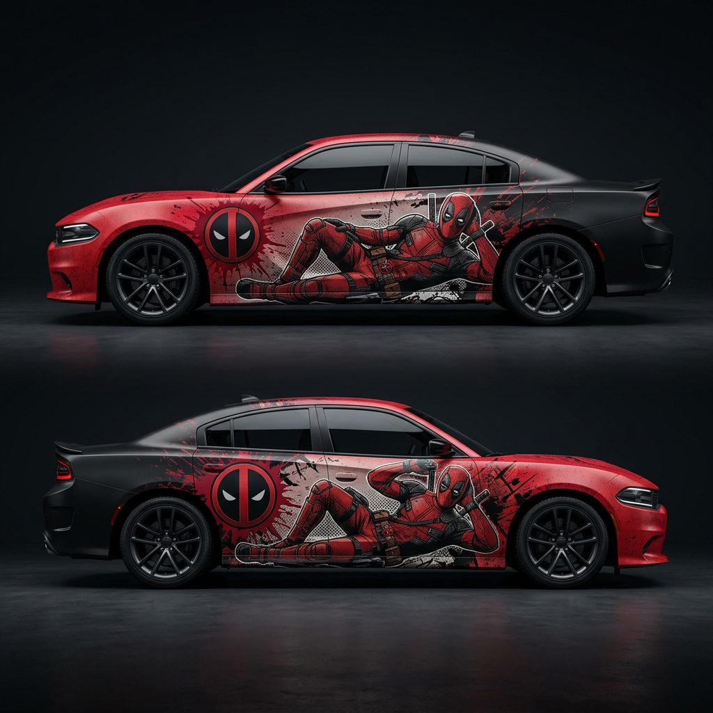 🔴🔫 Deadpool Splatter Car Wrap – Red Hot Chaos