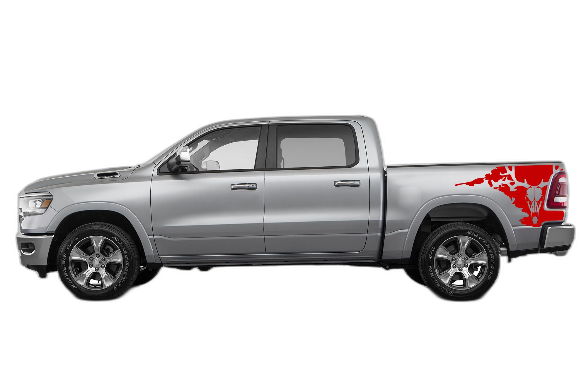 Deer skull side bed decals graphics compatible with Dodge Ram