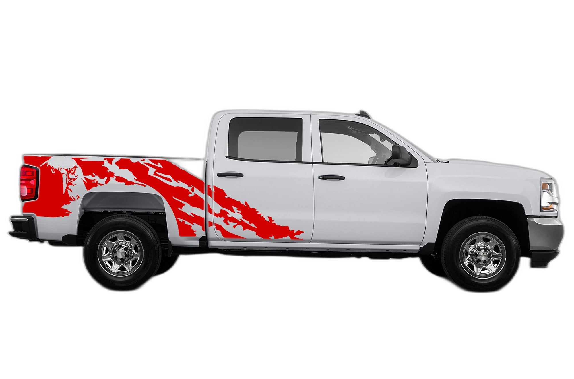Unleash the spirit of the eagle with our Eagle Shredded decals, custom-fit for the 2014-2018 Chevrolet Silverado. This powerful design features a dynamic, shredded-effect graphic that adds an aggressive, performance-focused edge to your truck. Designed specifically for the 3rd generation Silverado, these decals look sleek and professional, enhancing the natural profile of your vehicle. Crafted from premium, weather-resistant vinyl, our decals are built to stand the test of time, resisting fading, water, and debris, so your custom look stays vibrant through all your driving. Installation is user-friendly, allowing you to achieve a shop-quality finish in your own garage. Whether you want to reflect a fierce, powerful aesthetic or simply want a standout look for your daily drive, these eagle decals are the perfect choice. Trust in our expert-grade materials for a lasting, high-impact graphic package. Upgrade your Silverado’s appearance today with a design that stands for power, freedom, and high-performance quality.
