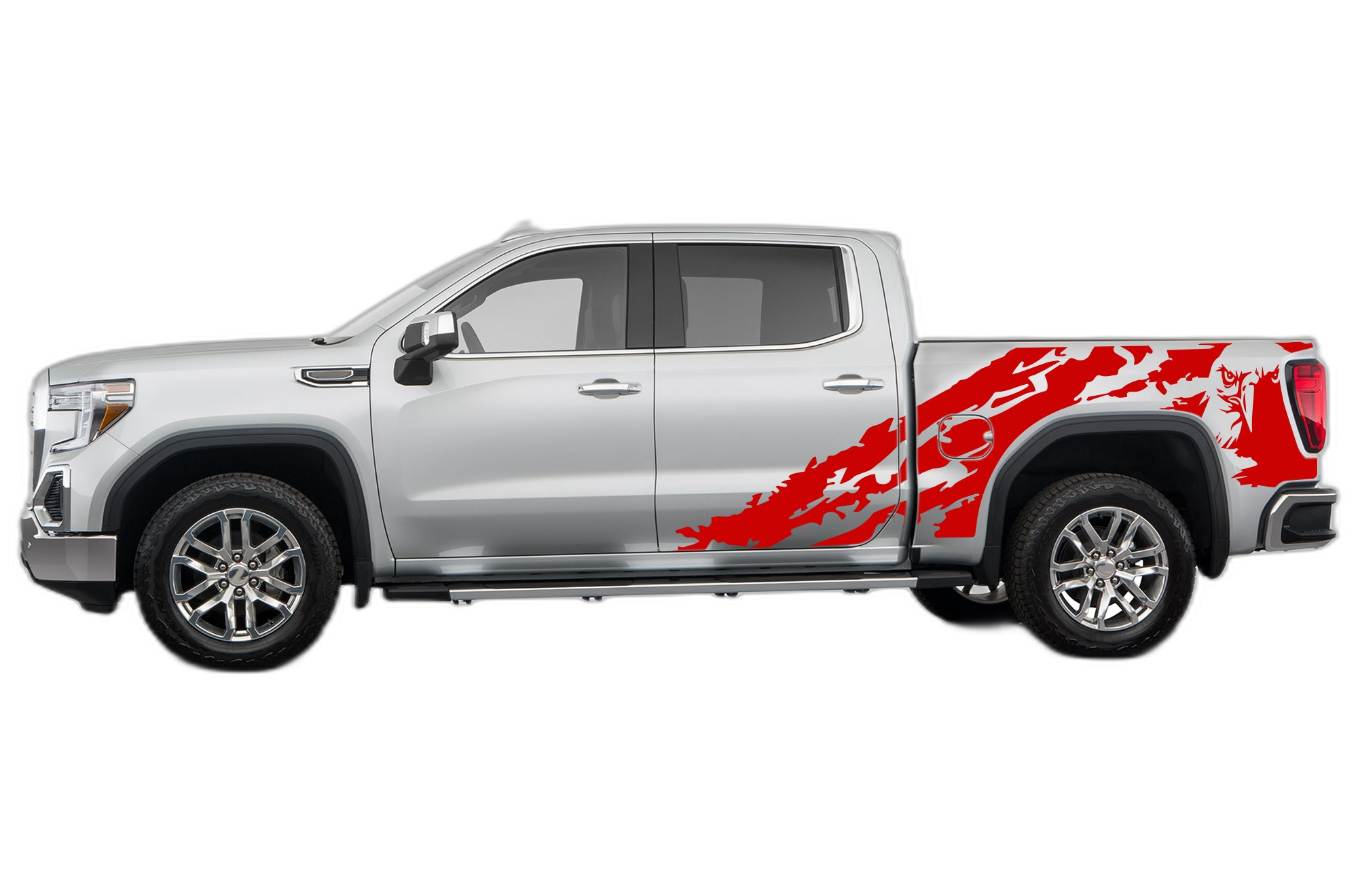 The eagle shredded graphics add a majestic and sharp aesthetic to your GMC Sierra. These decals are designed to capture attention and provide a rugged look for your truck’s side panels.