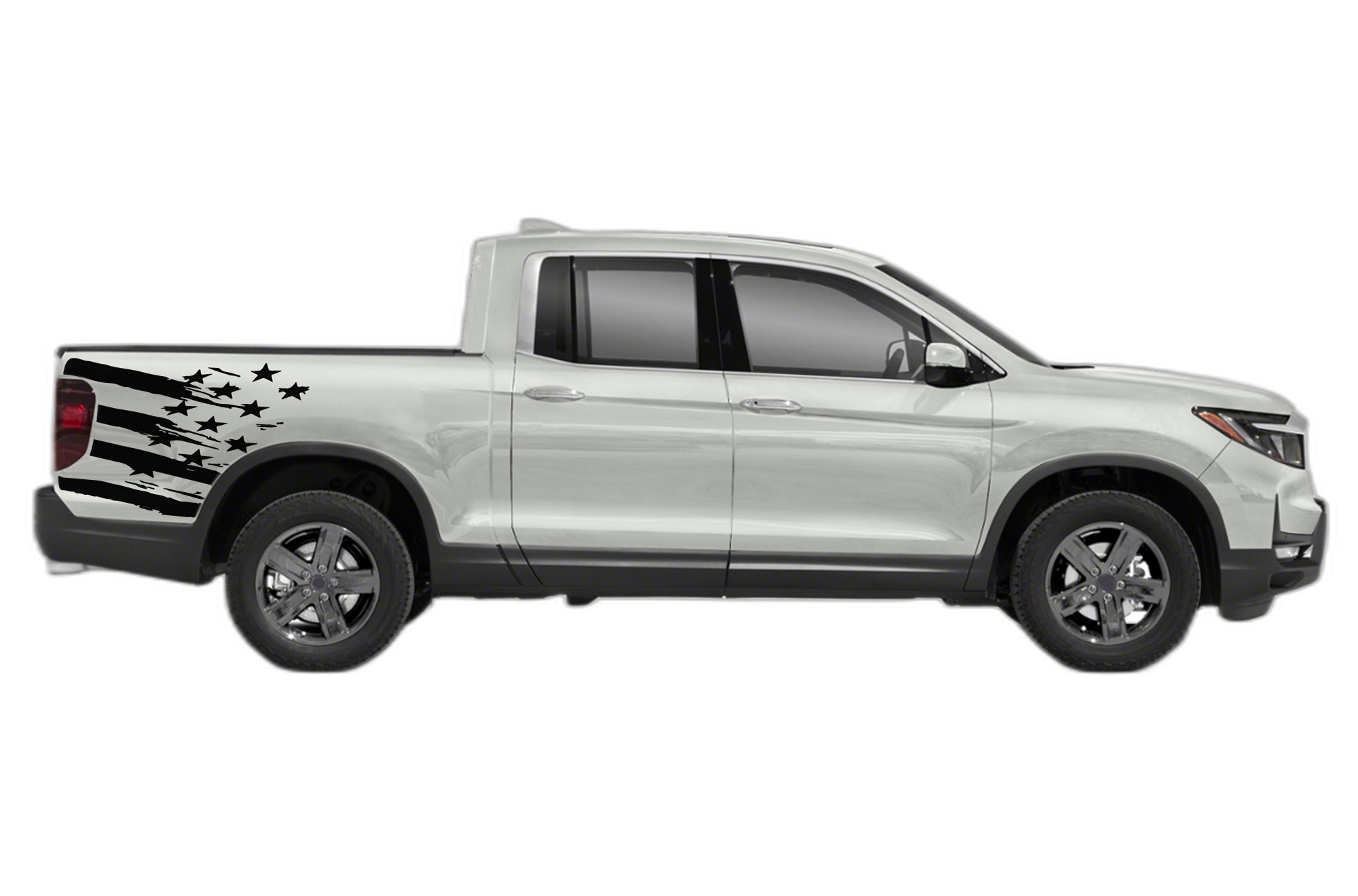 Show your pride with our Flag side bed decals for your Honda Ridgeline. Specifically designed for 2nd generation models, this graphic allows you to display a patriotic aesthetic on your truck with a clean, professional look. We use premium, automotive-grade vinyl that is built to last, offering excellent resistance against sun fading, rain, and road debris. The precision-cut design ensures an easy, bubble-free installation, providing a factory-like finish that you can do yourself. If you’re looking for an impactful, patriotic upgrade, these flag decals are the perfect choice. Durable, scratch-resistant, and visually striking, they make a bold statement on any road. Personalize your Ridgeline today with an accessory that reflects your values and your love for your truck. Stand out from the crowd with a custom, high-quality look that is built to perform and designed to endure. Experience the perfect blend of quality, style, and patriotism with our custom decal kit.