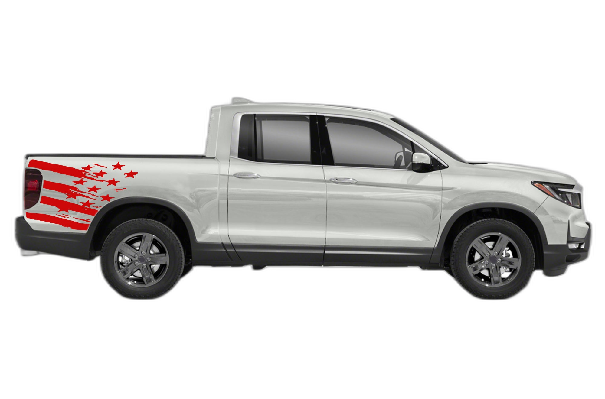 Incorporate a touch of patriotic style with our flag side bed decals. These graphics are specifically sized for the 2nd generation Honda Ridgeline, offering a balanced and clean look.