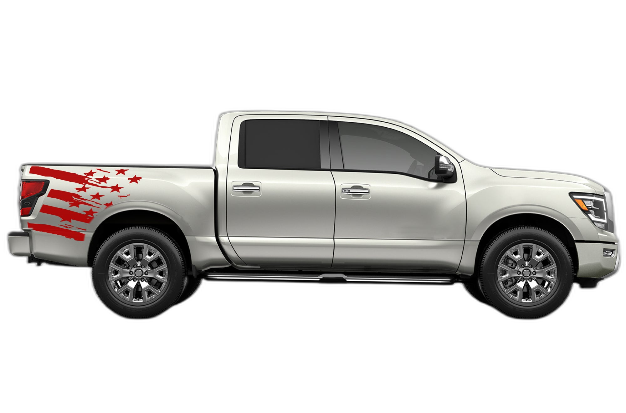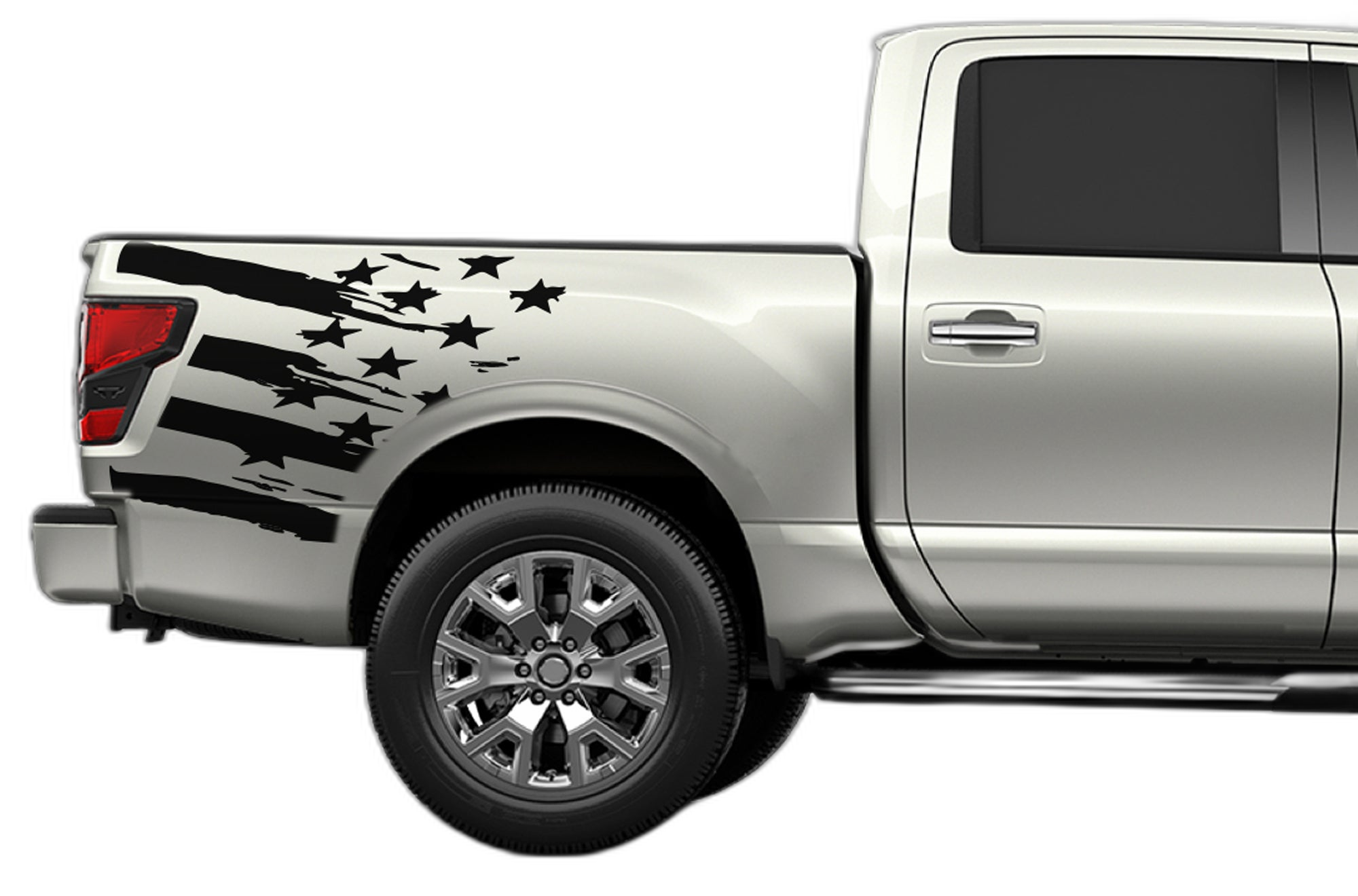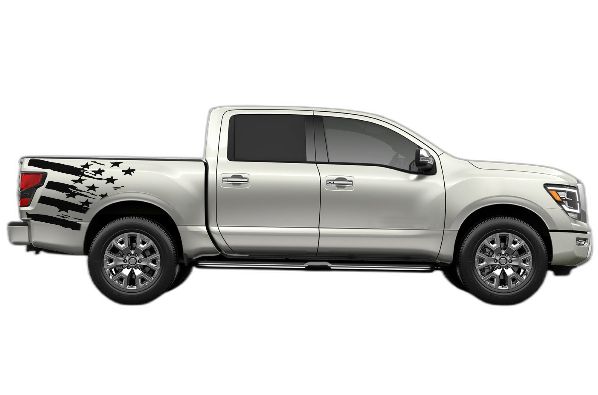 Our flag-inspired bed side decals are designed to give your 2017-2025 Nissan Titan a sharp and patriotic look. These graphics fit the bed area perfectly, offering a clean and professional enhancement to your truck’s side.