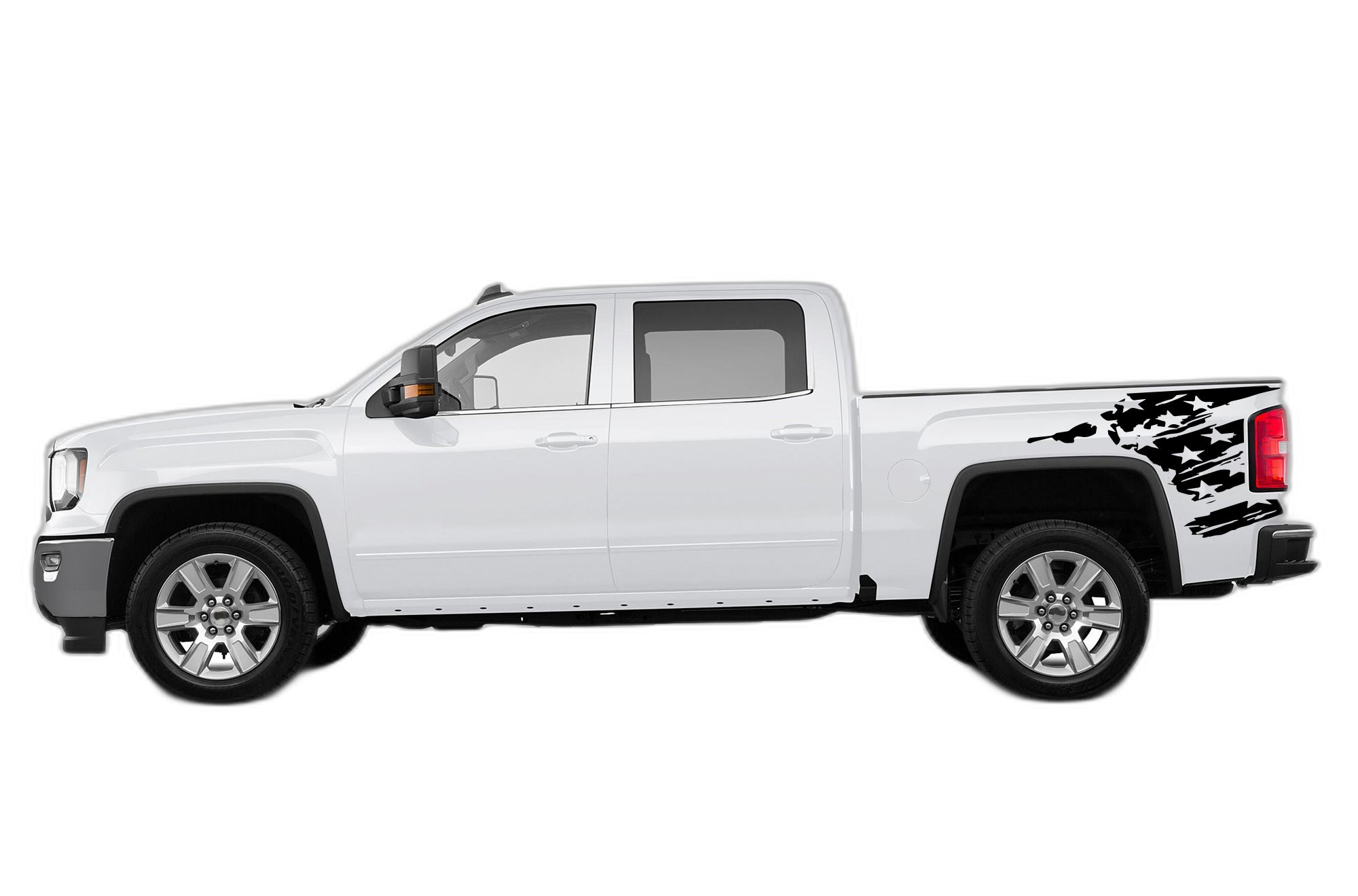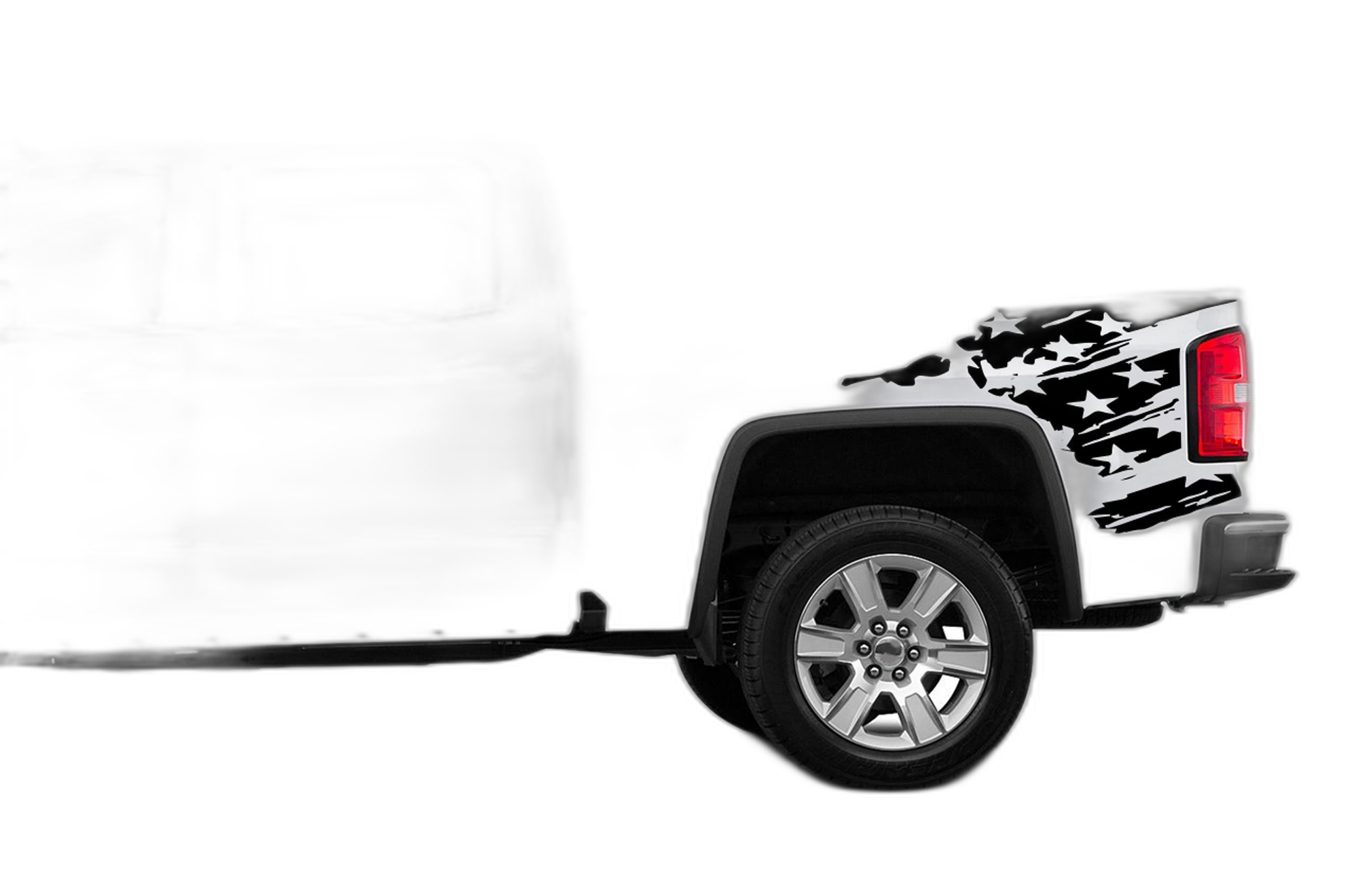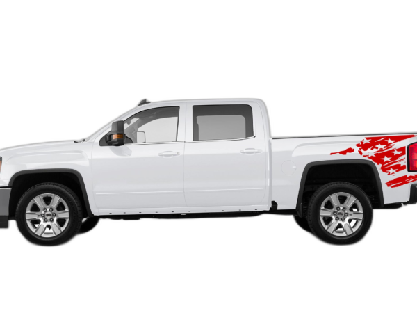 Show your national pride with our USA flag side bed decals, custom-fit for the 2014-2018 GMC Sierra. This classic design is the perfect way to add a patriotic flair to your truck while highlighting its strong, bold stance. Made from premium, UV-protected vinyl, these decals are built to endure everything from heavy rain and snow to blistering sun, ensuring the colors stay sharp and the edges remain clean. The graphic is precision-cut to align perfectly with the lines of the Sierra’s bed area, allowing for a professional-grade look that you can apply yourself. Ideal for truck enthusiasts who want a reliable, long-lasting, and eye-catching exterior modification. Whether you are cruising the highways or showcasing at a local truck event, these flag decals add a touch of timeless style to your 2014-2018 GMC Sierra. Order today and enhance your truck with high-quality, weather-tested graphics.