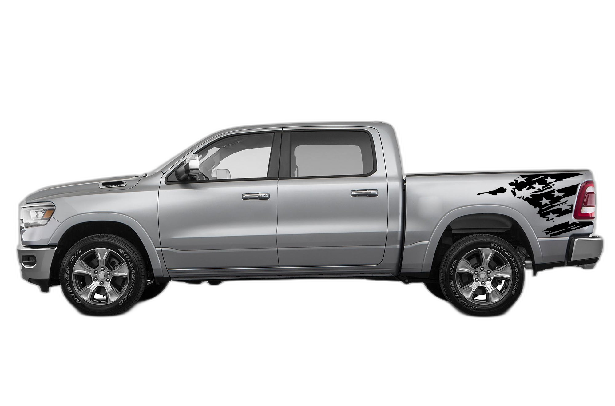 Show your personality with these flag-inspired side bed decals, precision-engineered to complement the rear sections of your Dodge Ram.