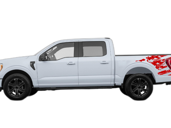 Incorporate a patriotic theme into your Ford F150 with our custom flag side bed graphics. These decals offer a bold statement that integrates perfectly with your truck’s body panels.