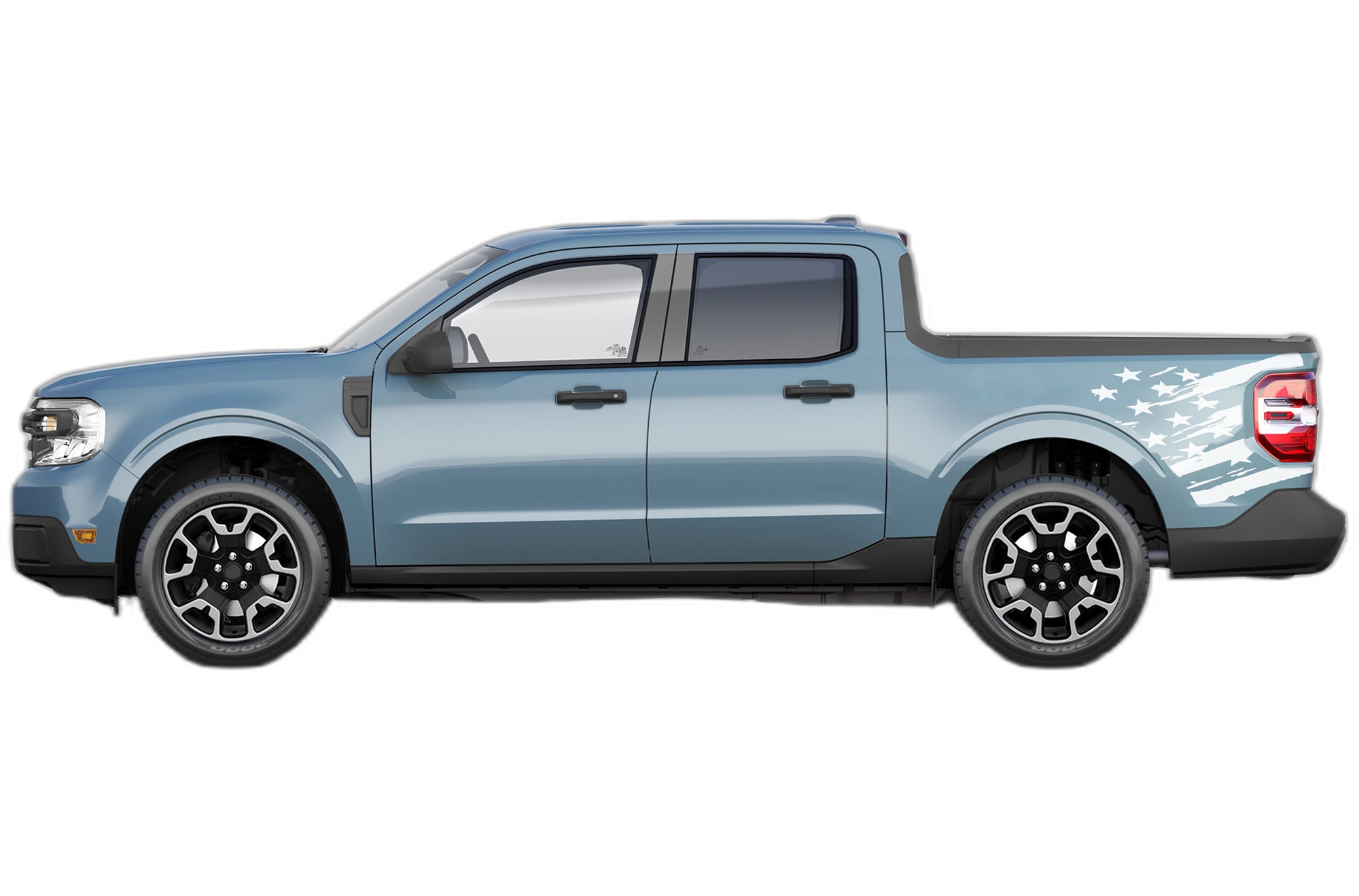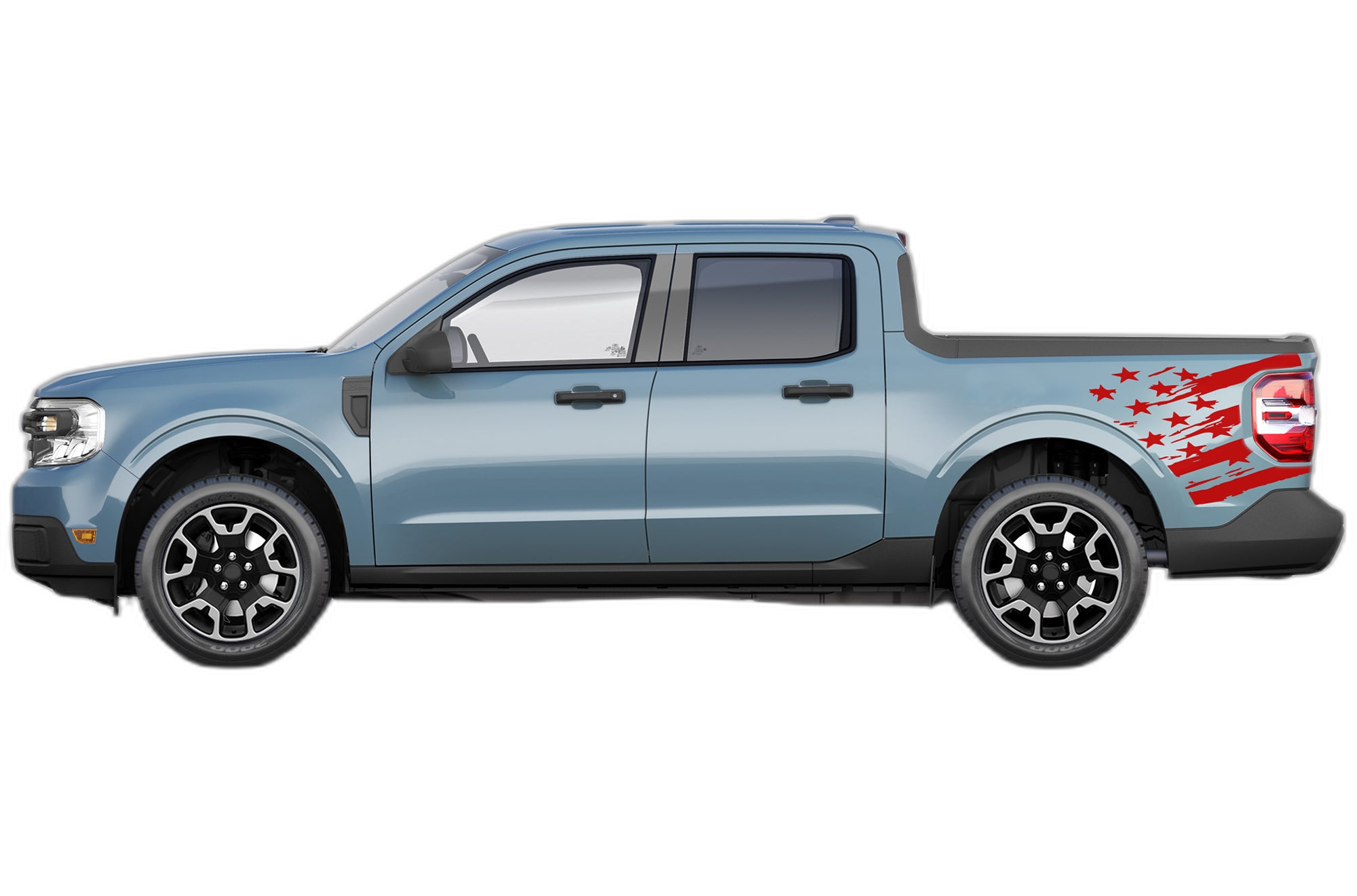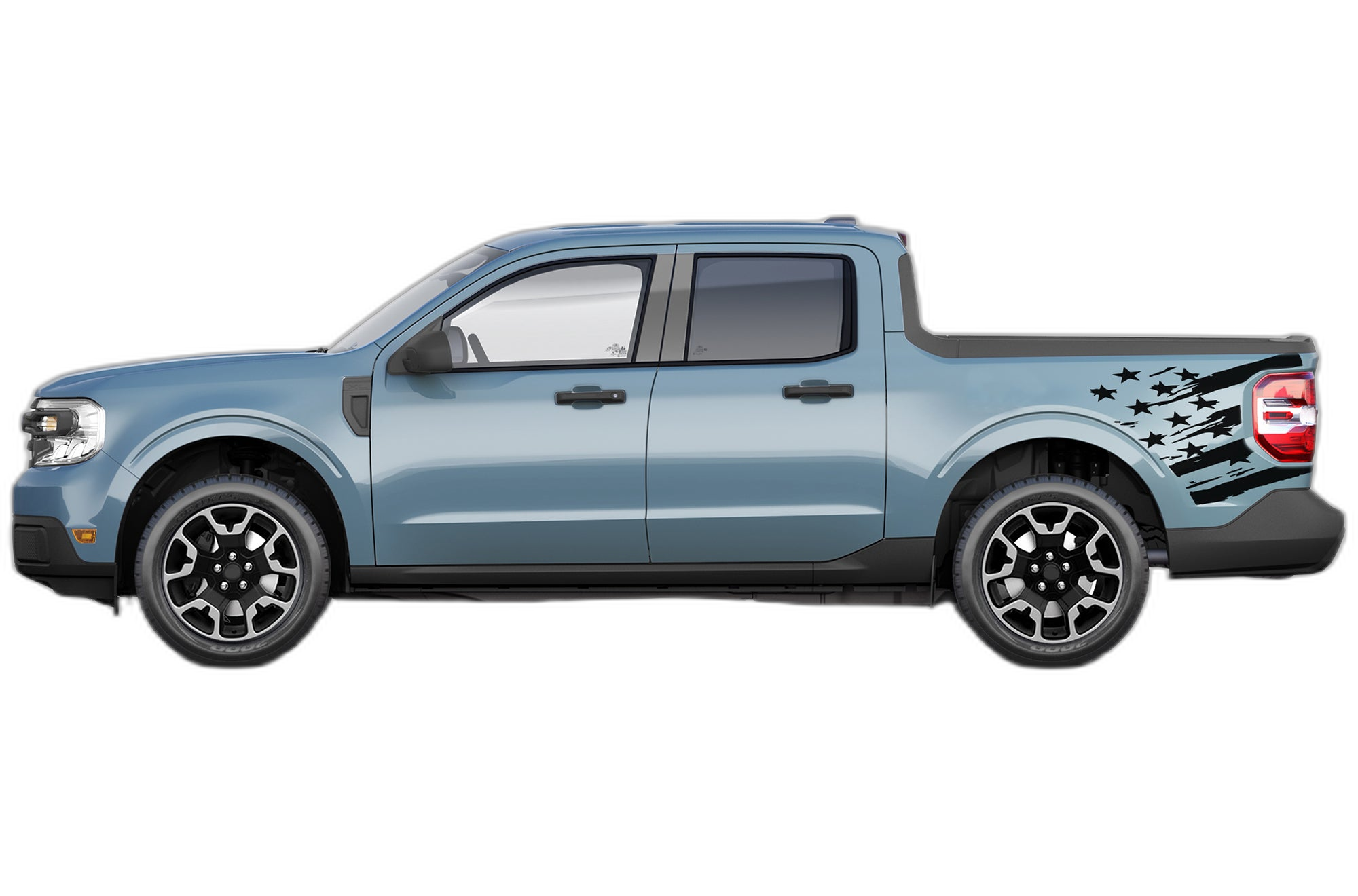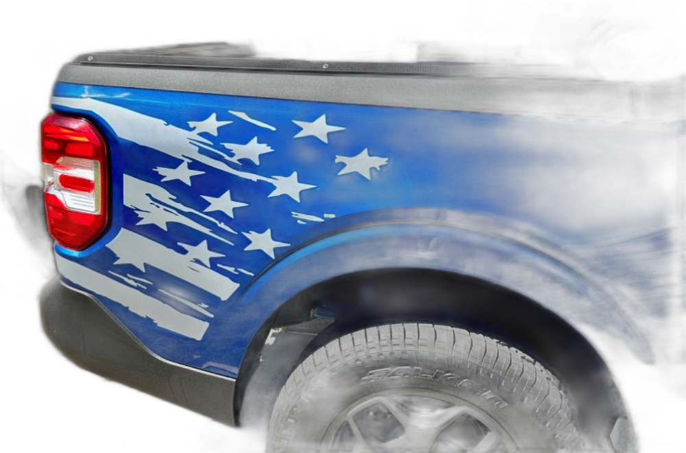 Transform the look of your Ford Maverick with our premium flag side bed graphics. These decals provide a custom, rugged aesthetic that highlights the unique body lines of your truck while showcasing a patriotic design.