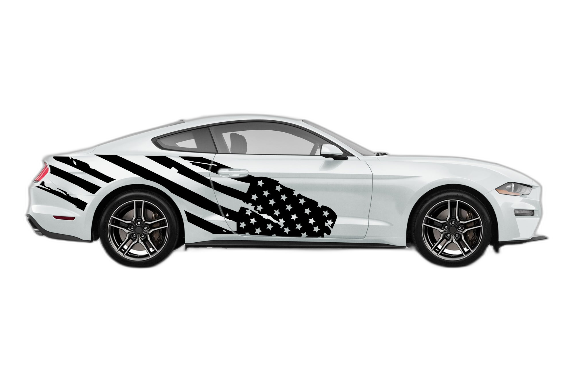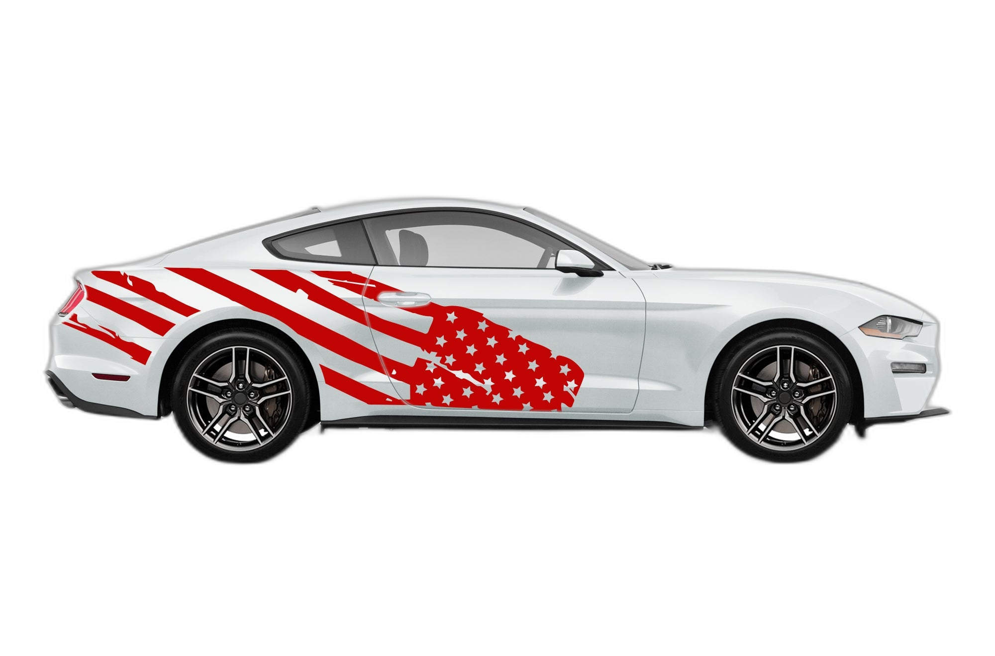 Transform the look of your 6th generation Ford Mustang with our USA flag side graphics. These decals provide a vibrant, high-contrast design that spans the side panels, perfect for owners who want to combine a classic look with a strong sense of pride.