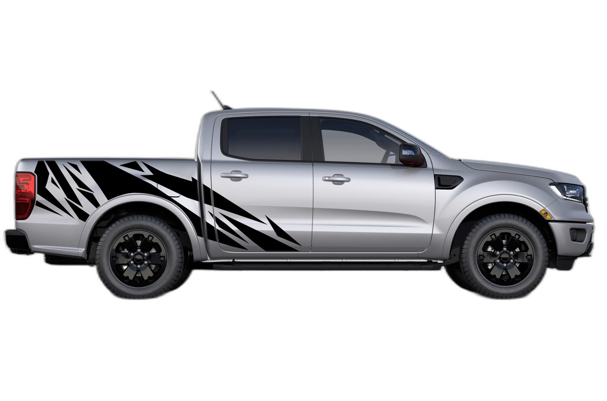Geometric pattern side decals graphics compatible with Ford Ranger 2019-2023 adds a bold custom styling touch to your Ford Ranger with a clean motorsport-inspired decal look. This design is intended for the listed fitment and works well for drivers who want sharper side profile styling without a full wrap. The graphic is suited for enthusiasts who value a strong visual upgrade, easy maintenance, and a finish that stands out on the street or at events. Always confirm your vehicle generation and prepare the surface correctly before installation for the best result. This product is a great option for refreshing the appearance of your build while keeping the install focused, practical, and visually aggressive.
