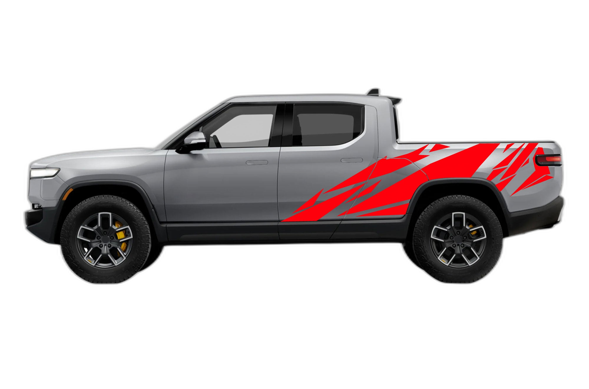 Upgrade your truck with our Geometric Pattern side decals for the Rivian R1T, a design that speaks to the precision and innovation of your electric vehicle. These decals feature a complex, interlocking geometric layout that adds visual intrigue to the clean lines of your truck. Whether you are navigating city streets or winding roads, these graphics provide a modern, high-tech look that stands out in any environment. Crafted from professional-grade automotive vinyl, these decals offer exceptional resistance against UV rays, rain, and road debris, ensuring your truck looks pristine for years to come. The precision-cut design allows for a straightforward installation, creating a custom, high-end finish that fits the R1T perfectly. Elevate your truck’s exterior aesthetic with a sophisticated, contemporary design that reflects your commitment to modern engineering and style. Simple, durable, and highly impactful, these geometric decals are the perfect choice for the discerning R1T owner.