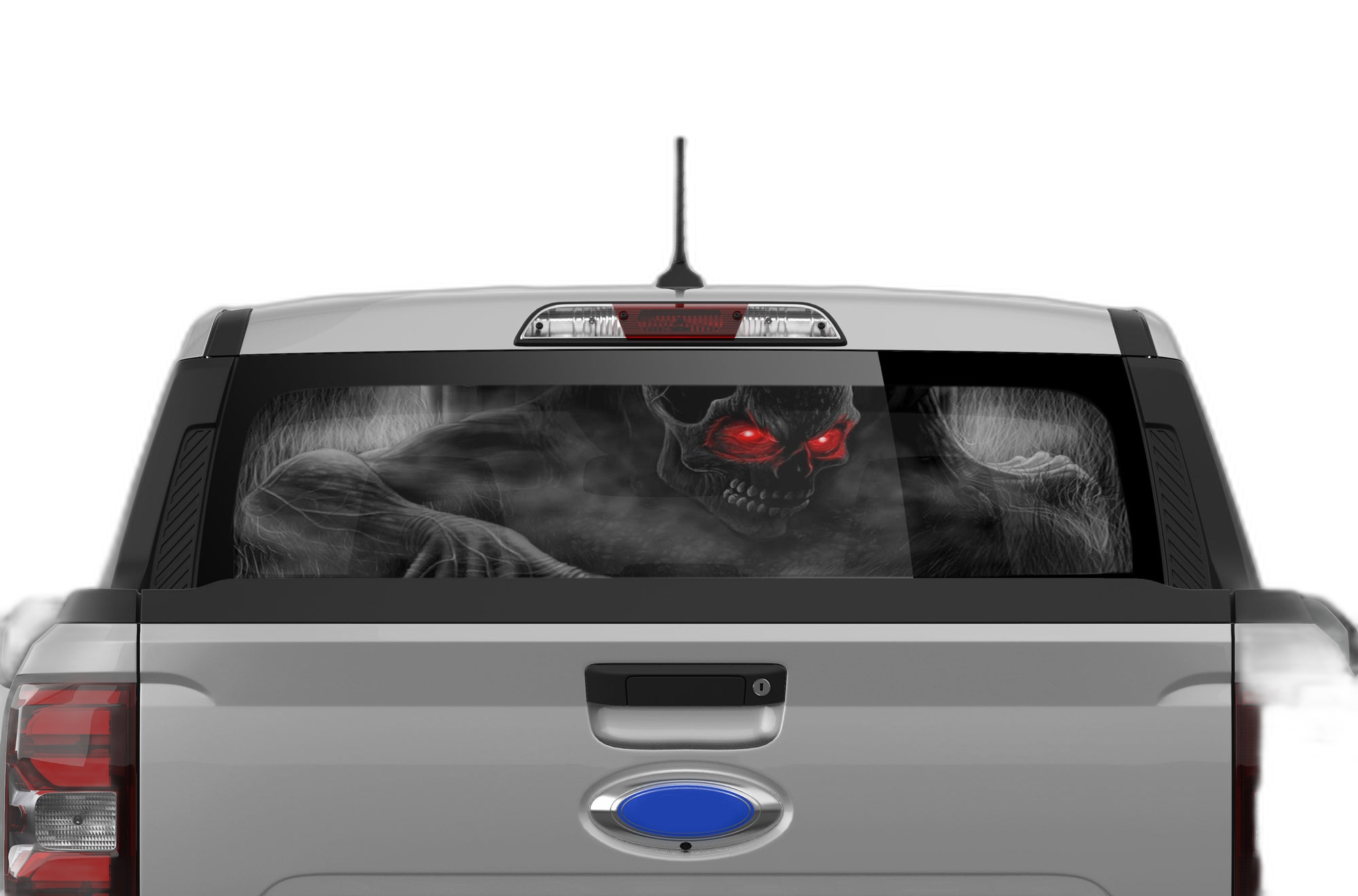 Give your Ford Maverick a dark, edgy personality with our ghost skull perforated rear window decal. This design is perfect for those who prefer a menacing, high-contrast look that stands out on the road. The one-way vision technology allows for perfect visibility from inside the cab while creating a cool, artistic skull graphic that those behind you will notice. Constructed from high-quality, weather-resistant perforated vinyl, this decal is built to handle the elements, resisting fading and peeling even in harsh sun or wet climates. The precision fit for the Maverick window ensures a clean, professional application every time. If you’re looking to differentiate your truck with a bold, unconventional style, this decal is the ultimate solution. Simple to install and long-lasting, it’s a great way to personalize your truck and showcase your unique aesthetic. Upgrade your Ford Maverick today with this professional-grade window graphic that balances style and safety perfectly.
