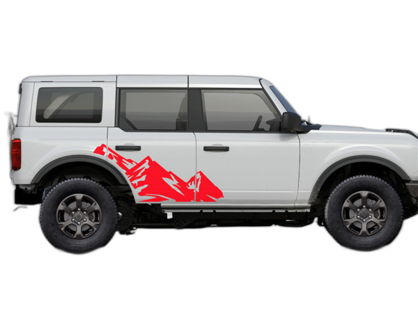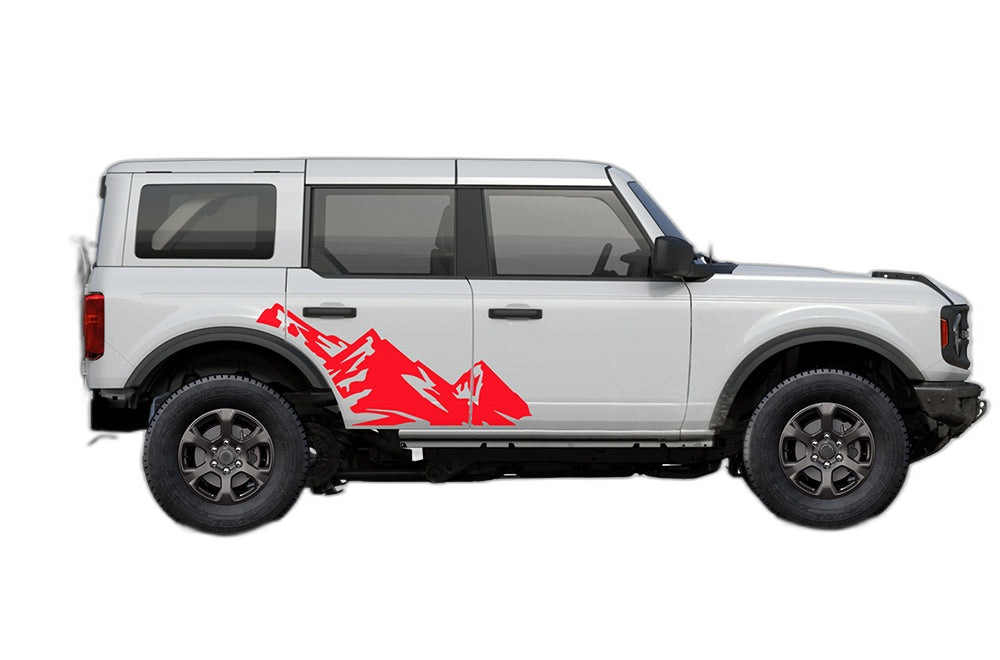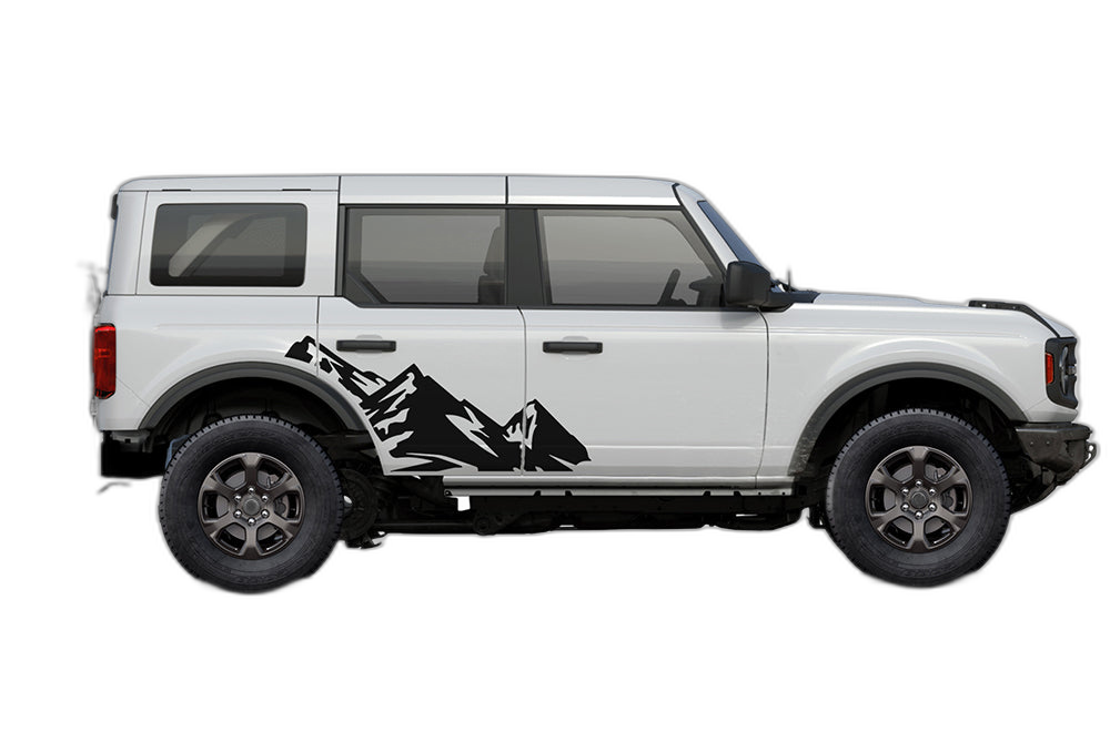 High mountain side decals graphics compatible with Ford Bronco adds a bold custom styling touch to your Ford Bronco Bronco Sport with a clean motorsport-inspired decal look. This design is intended for the listed fitment and works well for drivers who want sharper side profile styling without a full wrap. The graphic is suited for enthusiasts who value a strong visual upgrade, easy maintenance, and a finish that stands out on the street or at events. Always confirm your vehicle generation and prepare the surface correctly before installation for the best result. This product is a great option for refreshing the appearance of your build while keeping the install focused, practical, and visually aggressive.