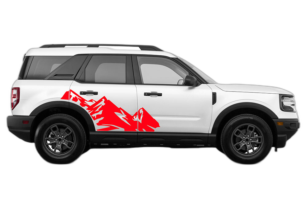 Bring the outdoors to your Ford Bronco Sport with these High Mountain side decals. Featuring a scenic mountain motif, these graphics are perfect for those who want to express their passion for adventure and exploration through their vehicle’s design.