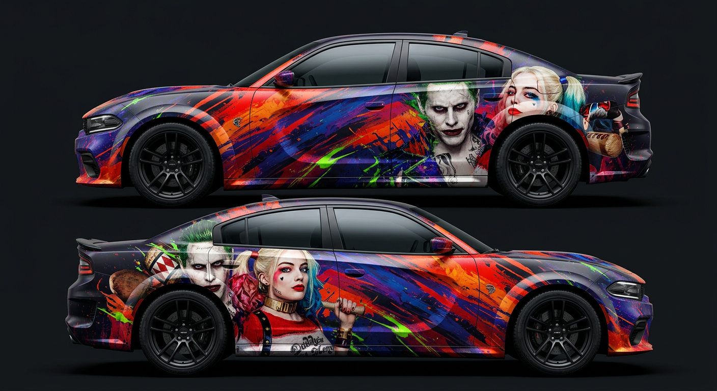 🎨🤡 Joker & Harley Quinn Abstract Car Wrap