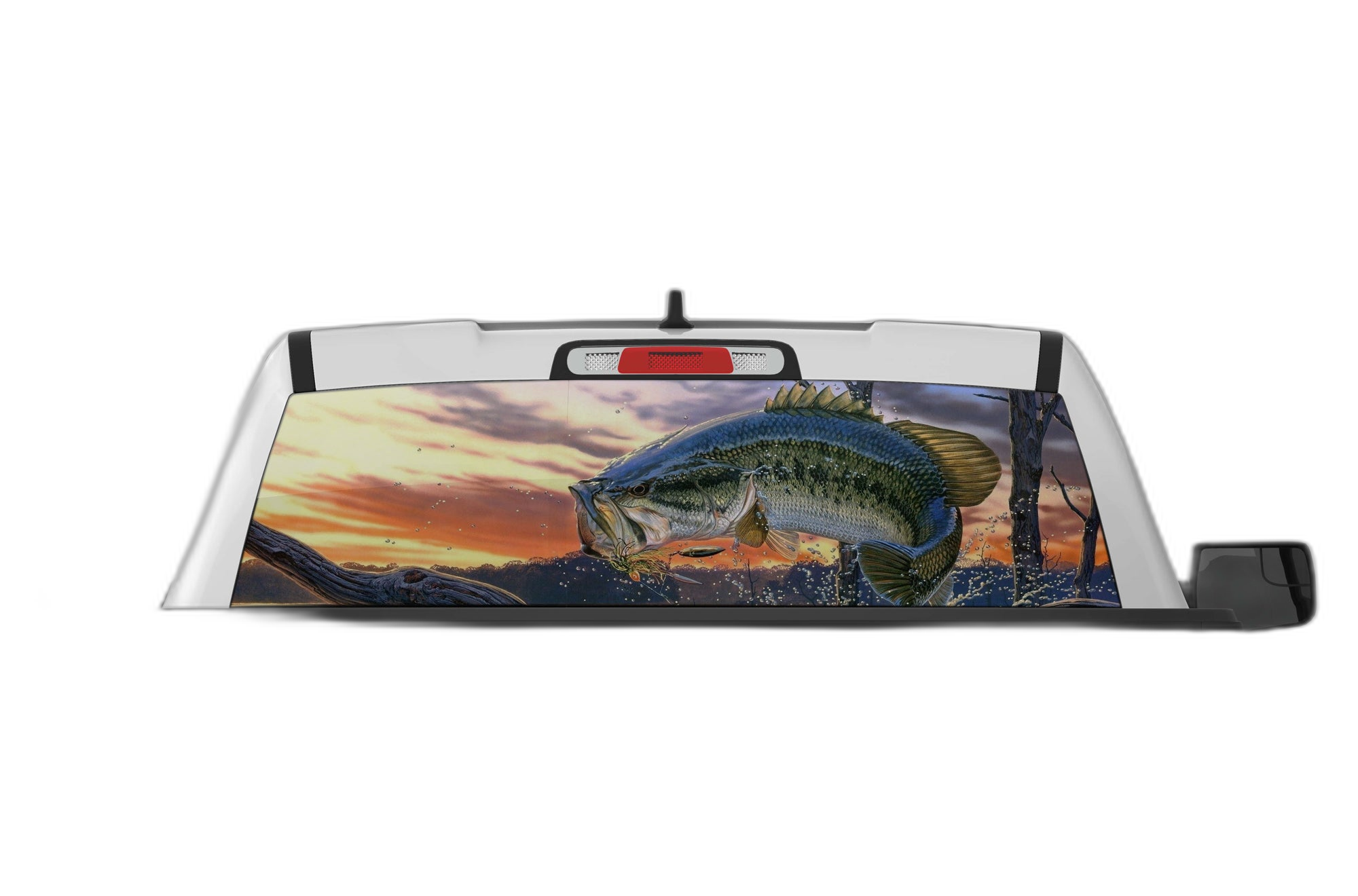 Largemouth bass perforated rear window decal graphics compatible with Dodge Ram
