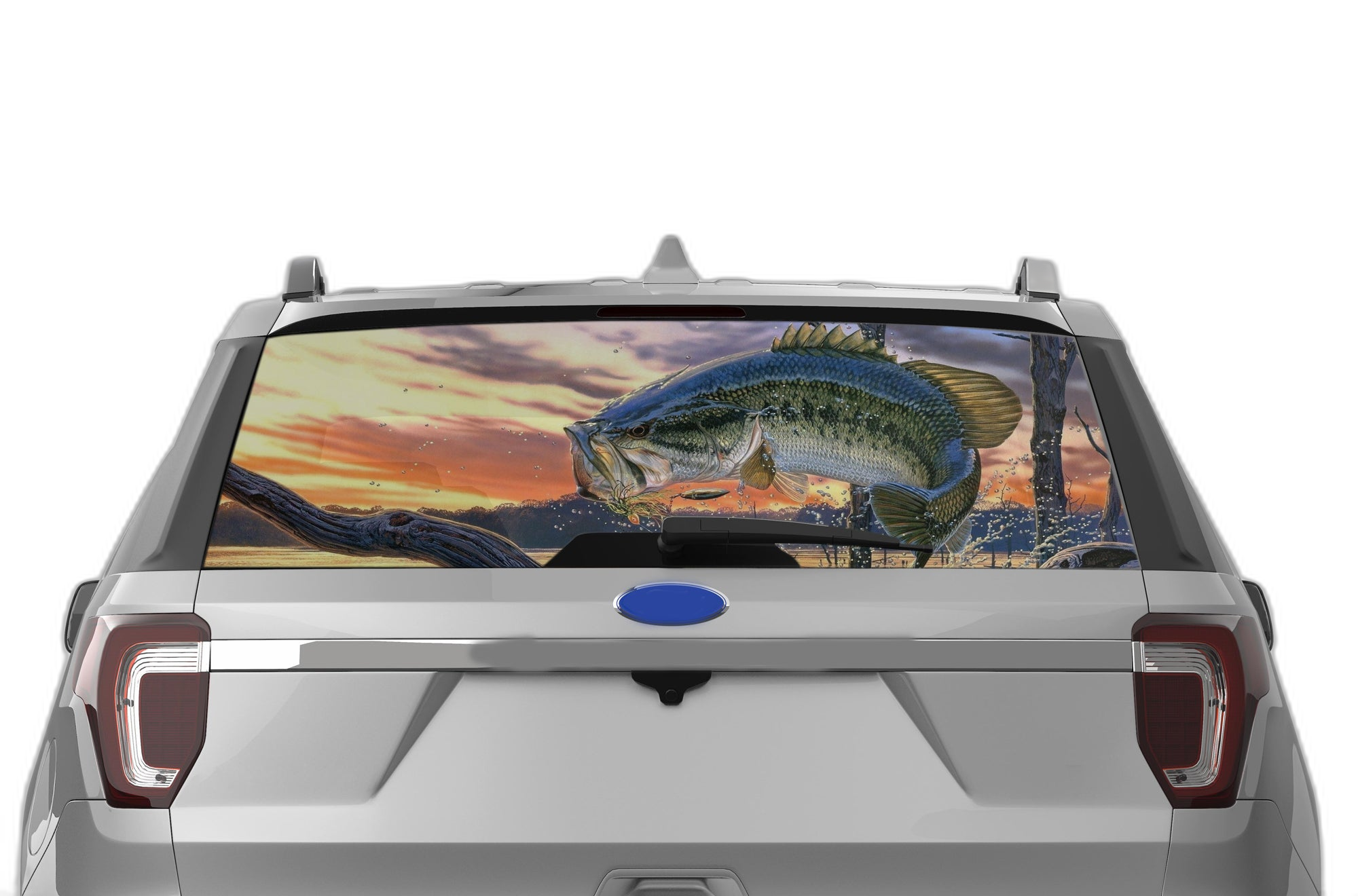 Largemouth bass perforated rear window decal graphics compatible with Ford Explorer 2011-2019
