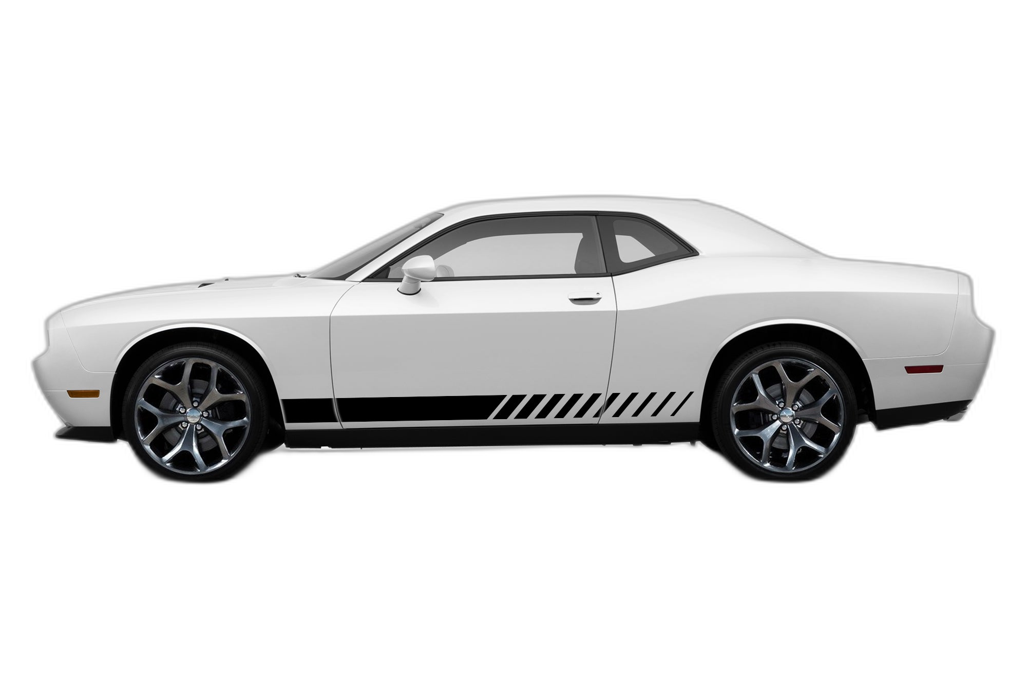 Enhance the sleek profile of your Dodge Challenger with our lower side racing stripes. These decals provide an understated yet effective racing aesthetic, perfect for drivers who appreciate a clean and sporty look.