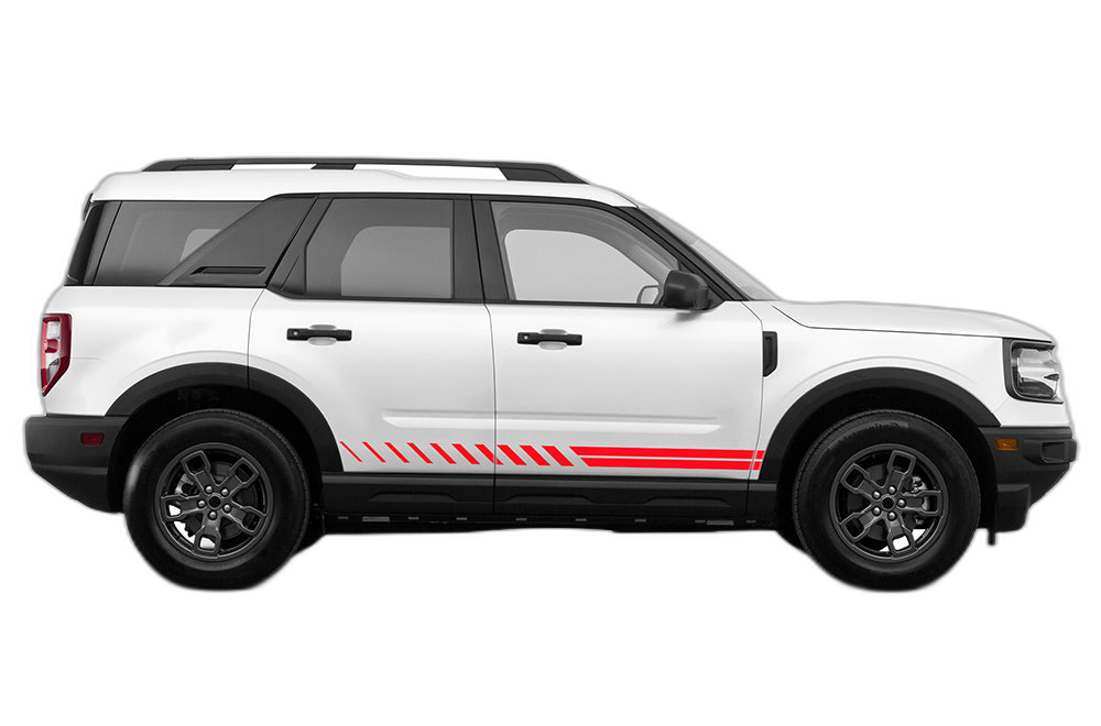 Lower side stripes graphics decals compatible with Ford Bronco Sport adds a bold custom styling touch to your Ford Bronco Bronco Sport with a clean motorsport-inspired decal look. This design is intended for the listed fitment and works well for drivers who want sharper side profile styling without a full wrap. The graphic is suited for enthusiasts who value a strong visual upgrade, easy maintenance, and a finish that stands out on the street or at events. Always confirm your vehicle generation and prepare the surface correctly before installation for the best result. This product is a great option for refreshing the appearance of your build while keeping the install focused, practical, and visually aggressive.