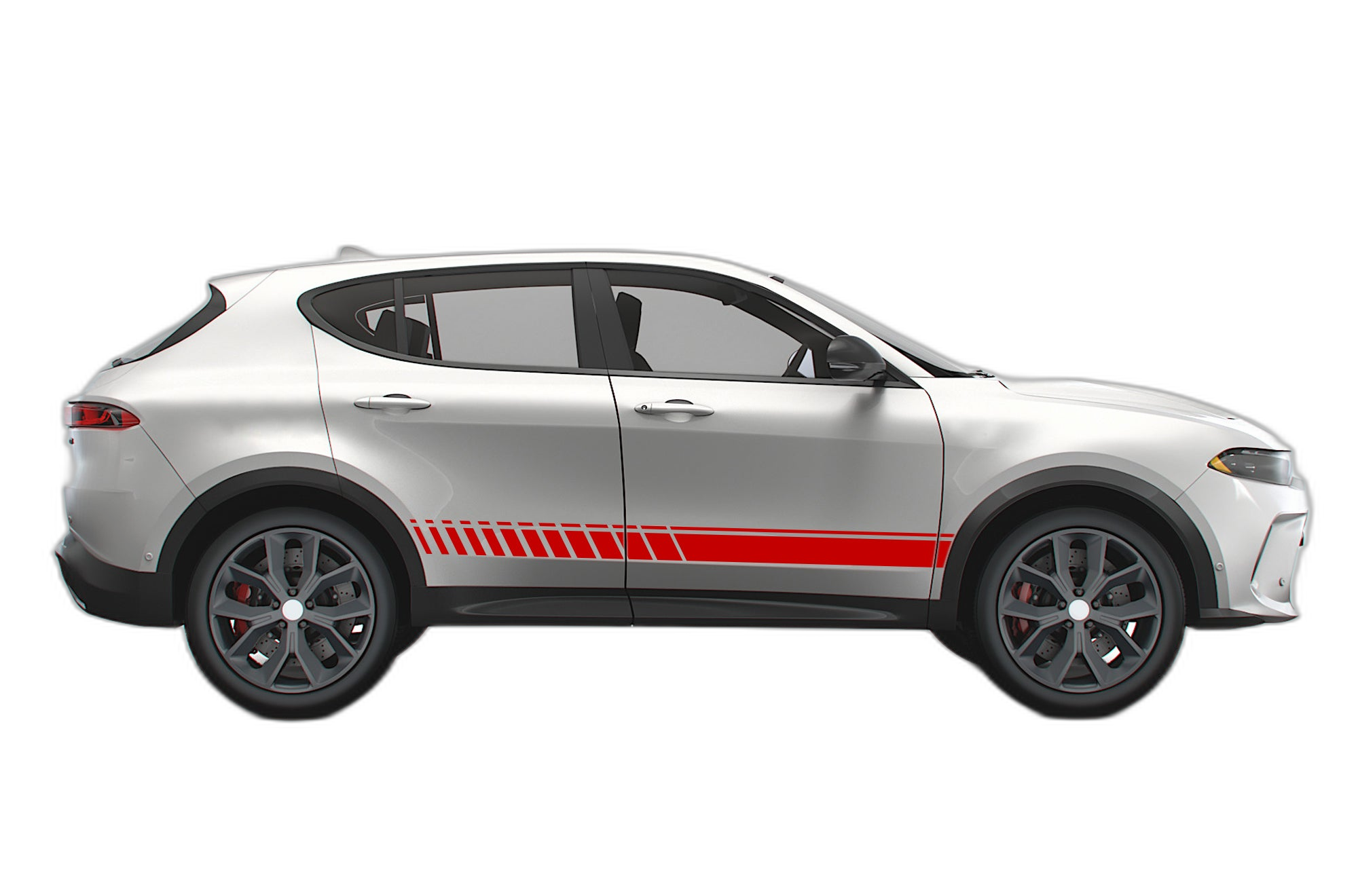 Enhance the design of your Dodge Hornet with these lower side stripes. These decals run along the lower portion of the car, providing a sleek, sporty look that emphasizes the Hornet’s athletic proportions.