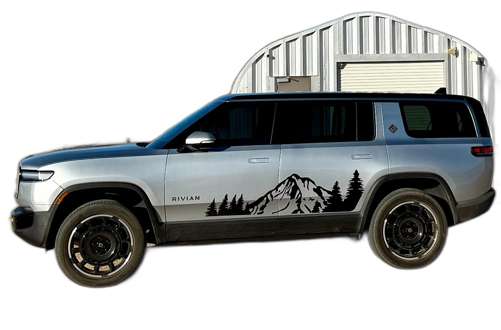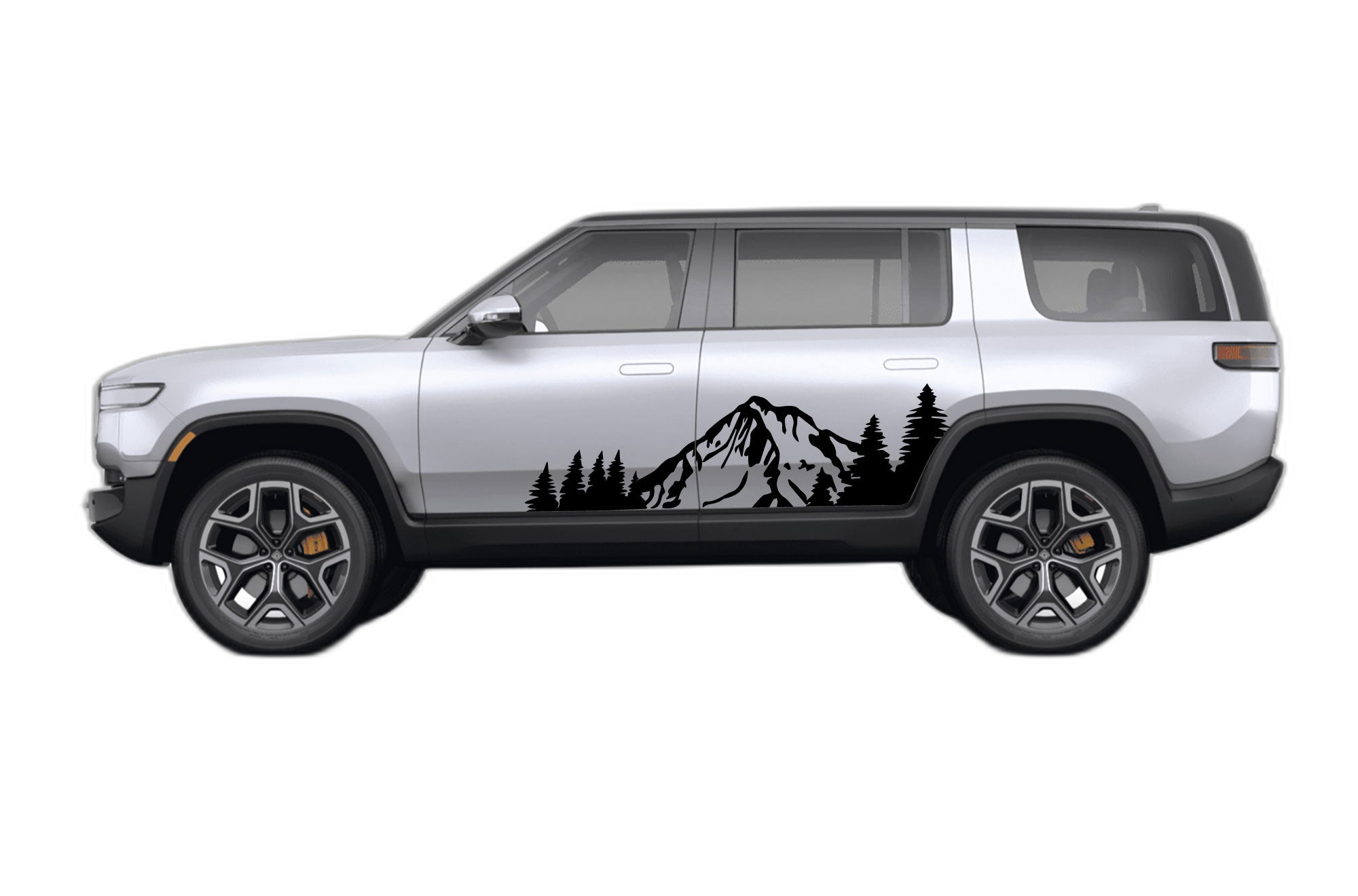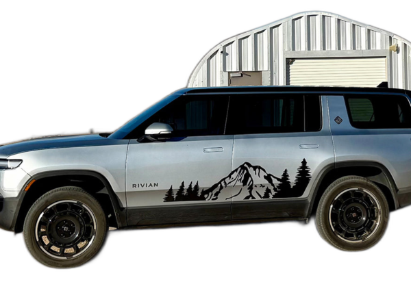 Celebrate the great outdoors with our Mountain Forest Side Decals for the Rivian R1S. This beautiful, detailed graphic adds a refined, adventurous aesthetic to your electric SUV. Made from top-quality, weather-resistant automotive vinyl, these decals are built to stand the test of time, remaining vibrant against UV rays and harsh conditions. Precision-cut to perfectly fit the body panels of your R1S, these graphics offer a custom, factory-installed look. Installation is quick and easy, allowing you to transform your SUV’s appearance in just a few minutes. Whether you are driving on local roads or venturing into the wilderness, these mountain-themed decals are a great way to showcase your adventurous spirit. Durable, eye-catching, and high-quality, this is the perfect upgrade for the Rivian R1S owner who loves exploring the world around them.