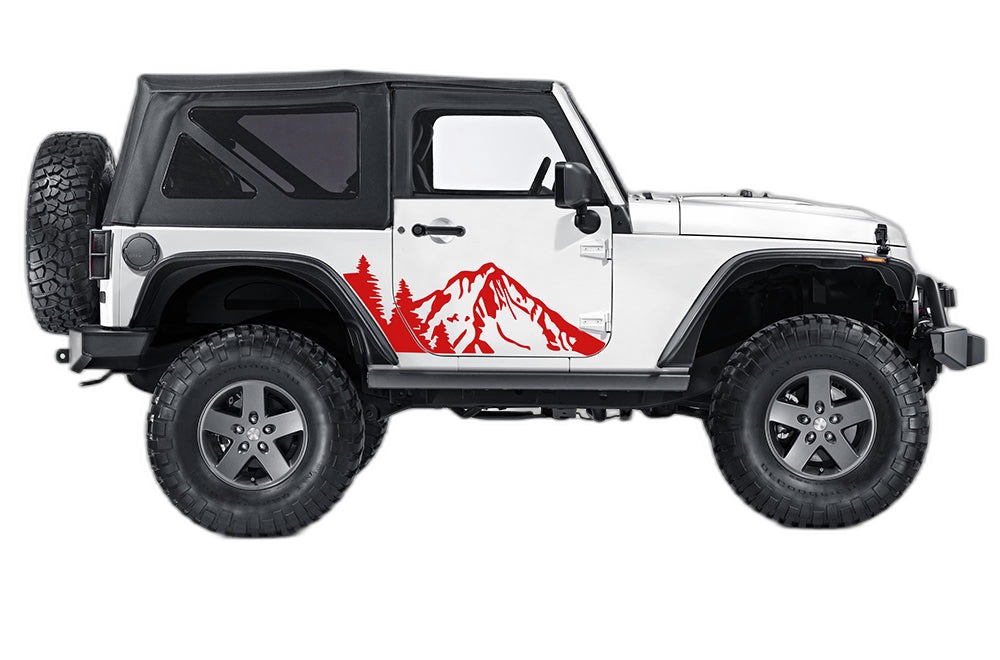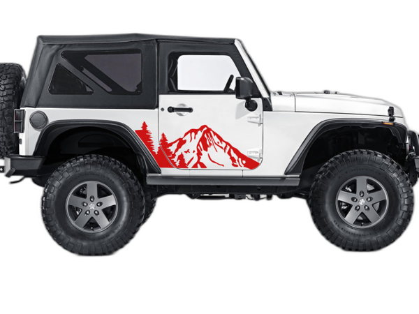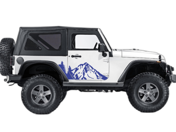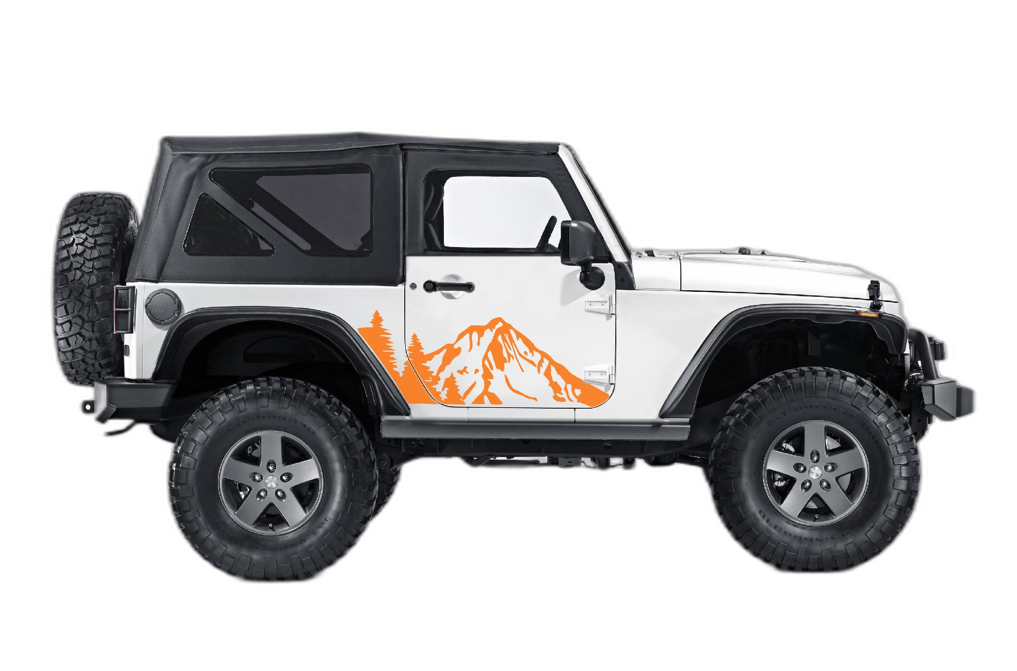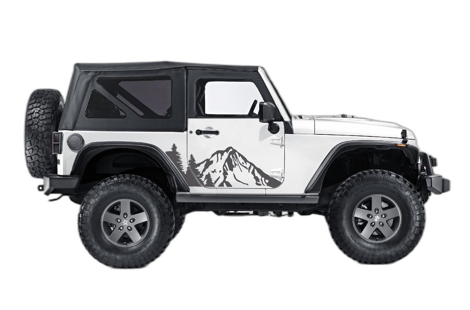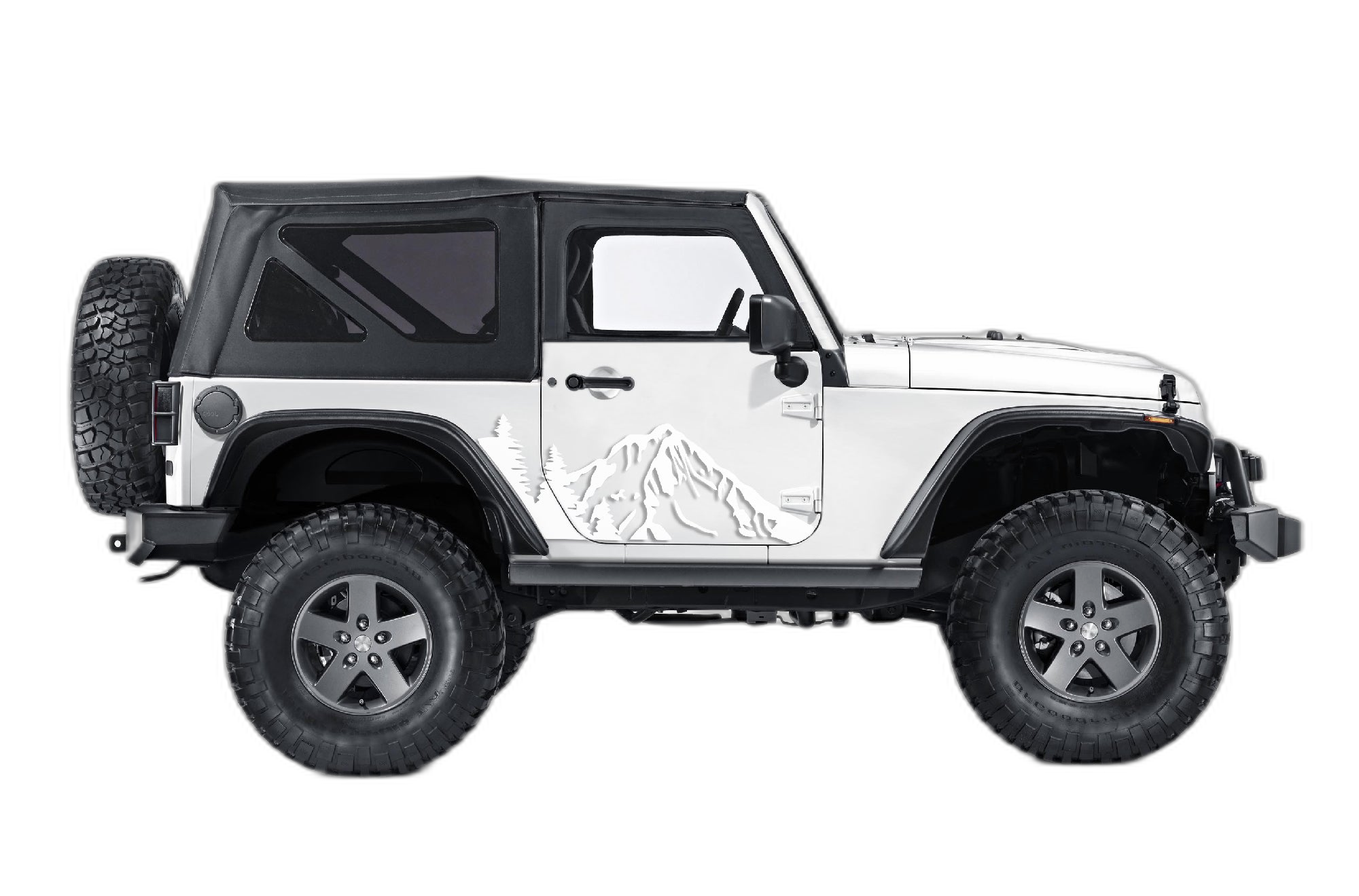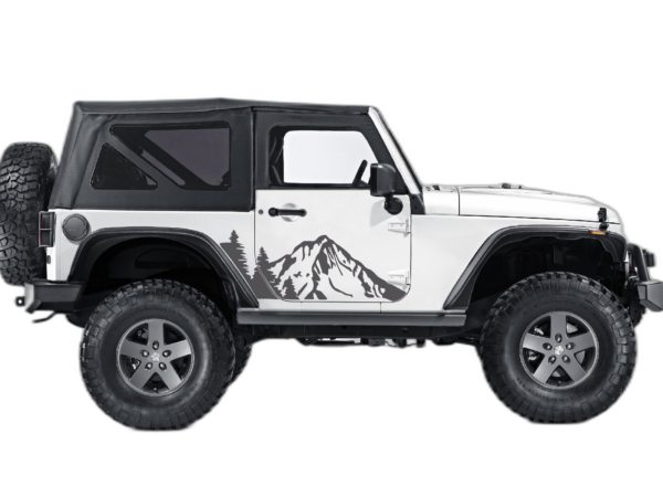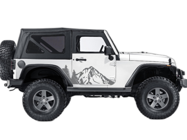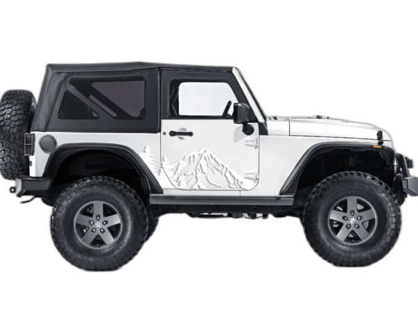 Transform your Jeep Wrangler JK 2-door into an adventure-ready machine with these mountain forest graphics. This detailed decal set captures the beauty of nature, perfect for any Jeep owner who enjoys exploring the wild.