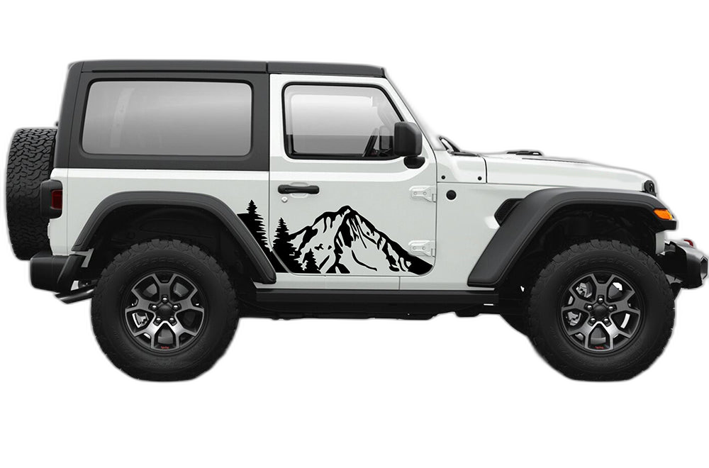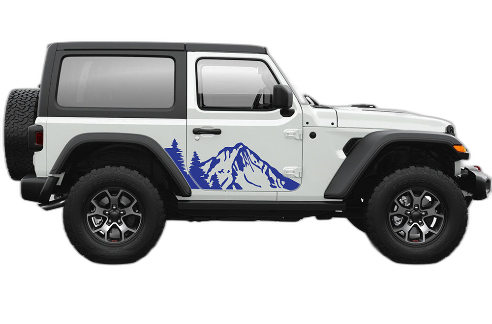 Adorn your 2-door Wrangler JL with this stunning mountain and forest scene. These door graphics are designed to fit perfectly and provide a detailed, natural aesthetic for your vehicle.