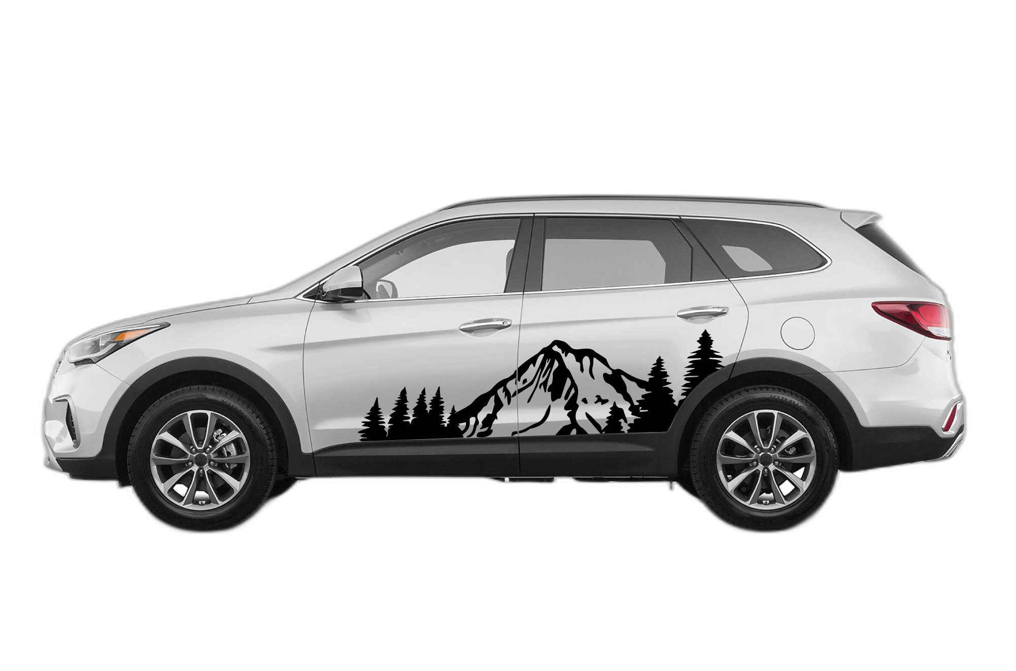Capture the spirit of adventure with our mountain and forest-themed graphics for the Hyundai Santa Fe. Designed for the outdoor enthusiast, these decals bring the wilderness to your SUV’s exterior. Using high-quality, fade-resistant vinyl, these graphics are built to last through all your off-road excursions and daily commutes. The precise fit for 2019-2023 models ensures the artwork aligns perfectly with the door and fender panels. Whether you’re exploring deep forests or cruising through the mountain passes, this design makes your vehicle the perfect companion for your travels. The vinyl is weather-proof and durable, ensuring that the crisp, detailed imagery remains vibrant even after years of sun and exposure. Transform your Santa Fe into a true adventure machine with these custom graphics.
