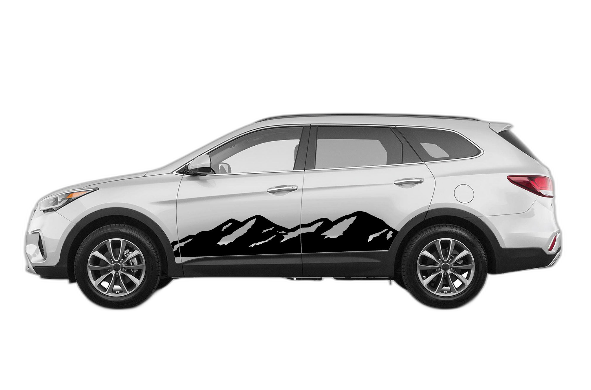 Our Mountain graphic kit brings the spirit of adventure to your Hyundai Santa Fe. With a stylish mountain-scape design, these decals allow you to express your love for the wilderness while enhancing the look of your 4th Gen SUV.