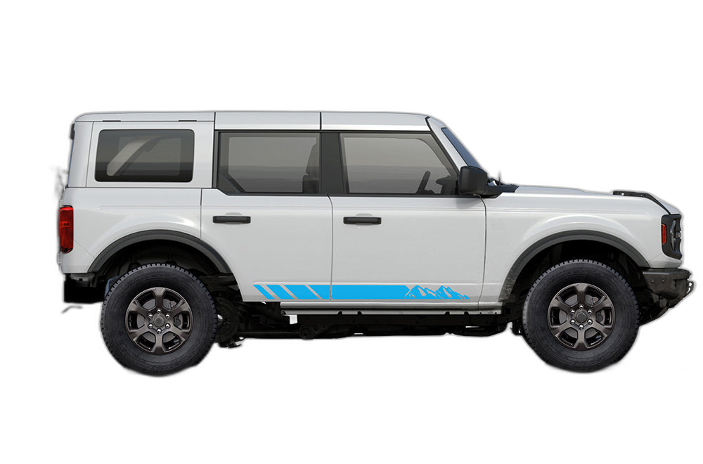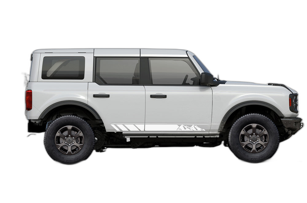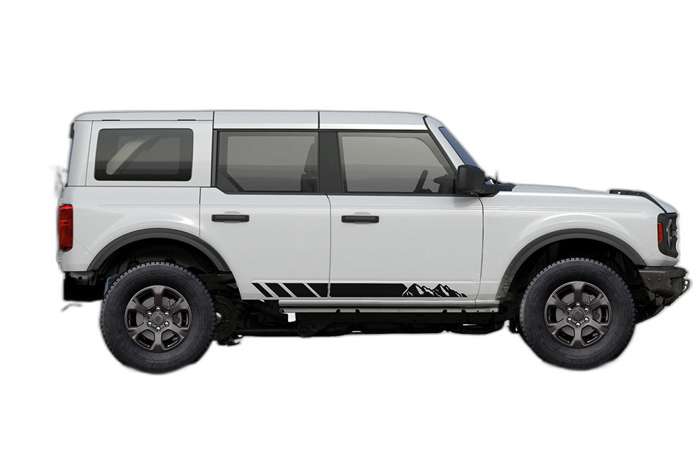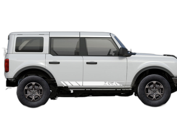 Celebrate your love for the great outdoors with our mountain lower stripe side decals for the Ford Bronco. These graphics feature a scenic, stylized mountain range that perfectly complements the rugged, adventure-ready spirit of the Bronco. Crafted from heavy-duty, outdoor-grade vinyl, these decals are built to withstand the harshest environments, resisting fading from UV rays and damage from road debris. The custom-fit ensures the design flows naturally along the lower side of your vehicle, adding a layer of depth and adventure-inspired style. Installation is straightforward and designed to provide a professional, long-lasting finish. Whether you’re a weekend hiker, a professional off-roader, or simply a fan of the wilderness, these decals allow you to customize your vehicle to match your lifestyle. Transform your Bronco’s exterior into a reflection of your passion for adventure with these high-quality, durable mountain graphics that are as tough as the vehicle itself.