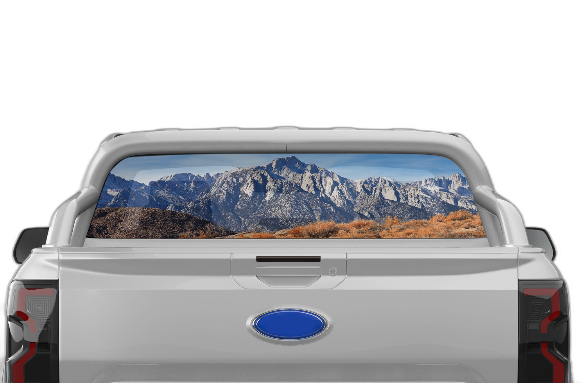 Mountain perforated rear window decal graphics compatible with Ford Ranger 2019-2023