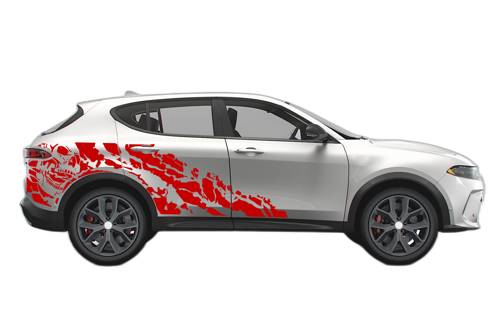 Unleash the wild side of your Dodge Hornet with our Nightmare shredded side decals. These high-impact graphics feature a bold, edgy design that gives your vehicle an aggressive, high-performance look. Made from top-tier, heavy-duty vinyl, these decals are built to withstand the rigors of the road, including extreme temperatures and car washes. Each graphic is precision-cut to match the unique body panels of the Hornet, ensuring a seamless and professional appearance. The UV-resistant finish maintains the sharpness of the design, keeping your car looking fresh for years to come. Whether you want to intimidate on the track or turn heads at the local car show, these shredded decals offer the perfect blend of style and durability. Elevate your Hornet’s presence with this custom vinyl upgrade that combines quality materials with unmatched visual impact.