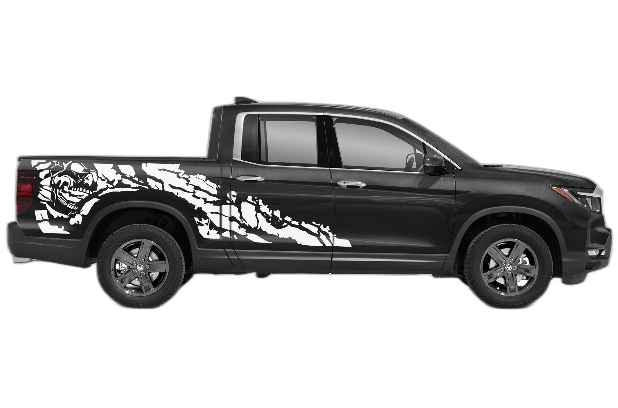 Transform your Honda Ridgeline with our Nightmare Shredded side decals. Designed for 2nd generation models, these graphics add a bold, aggressive, and edgy look to your truck. We use top-tier automotive vinyl, ensuring your decals provide lasting durability against fading, sun damage, and moisture. The shredded effect gives your truck a custom, high-energy aesthetic that stands out on the road. Installation is straightforward and satisfying, allowing you to achieve a professional-grade look at home. Whether you are looking to darken your truck’s style or simply want an impactful upgrade, these Nightmare decals are the perfect choice. High-quality materials and a bold, precision-cut design ensure your Ridgeline looks its best. Durable, weather-resistant, and visually unique, this kit is an essential addition for any owner wanting to personalize their ride. Stand out from the crowd with an edgy, long-lasting transformation that reflects your personal taste.