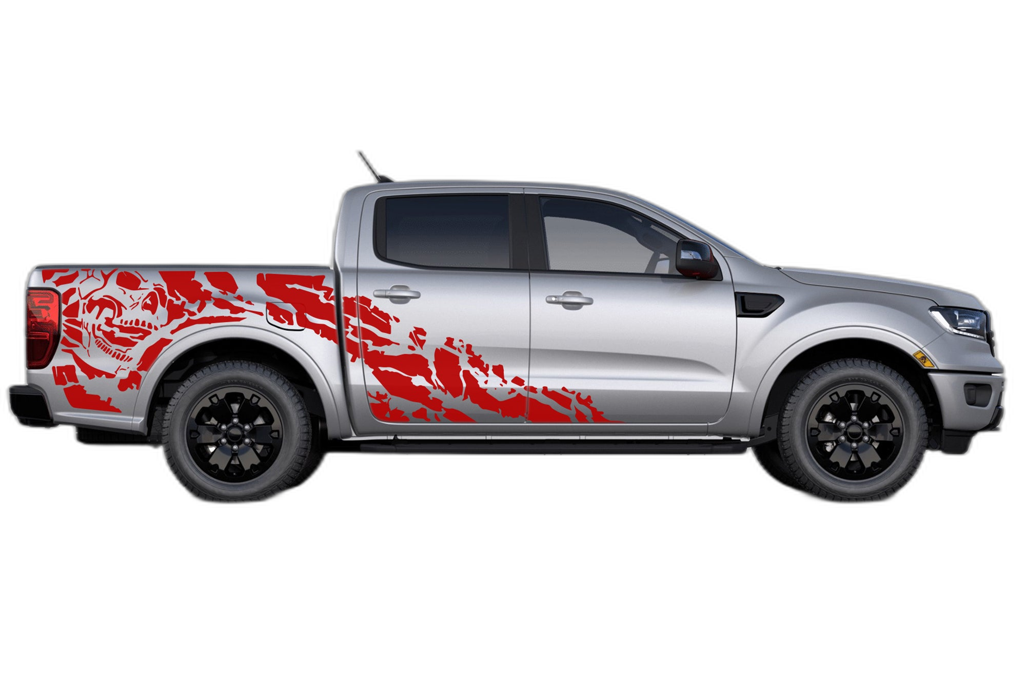 Make your 2019-2023 Ford Ranger stand out with our Nightmare shredded side graphics. These decals provide an aggressive and custom look that flows perfectly with the body lines of your truck.