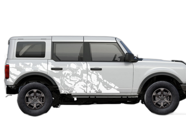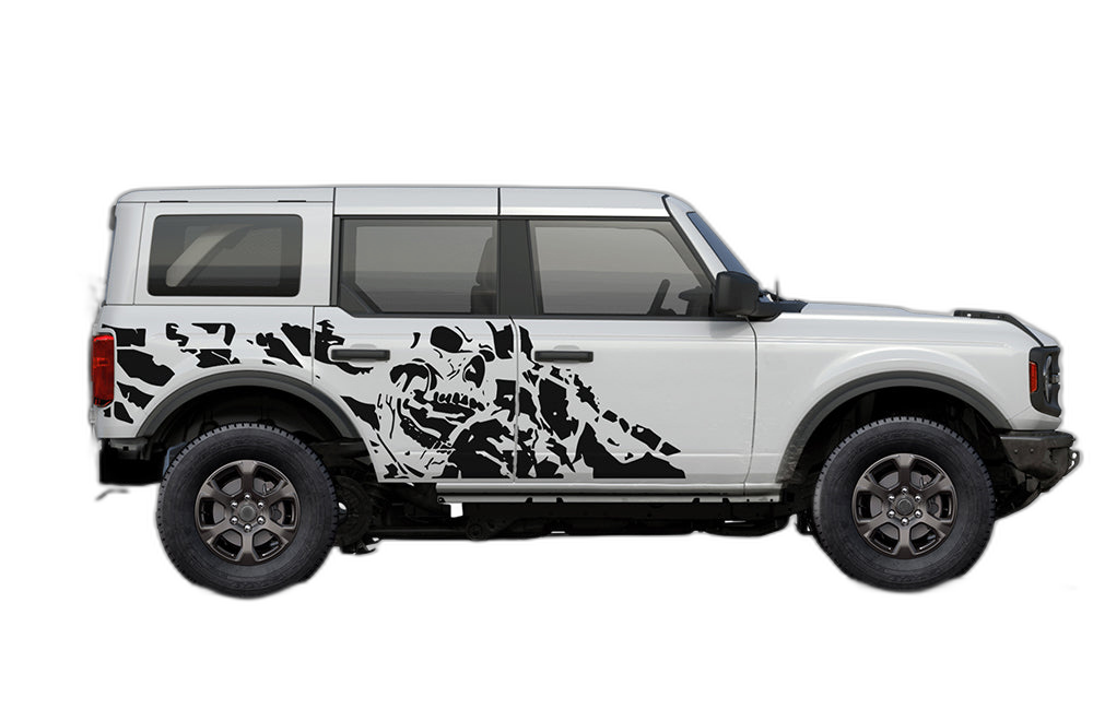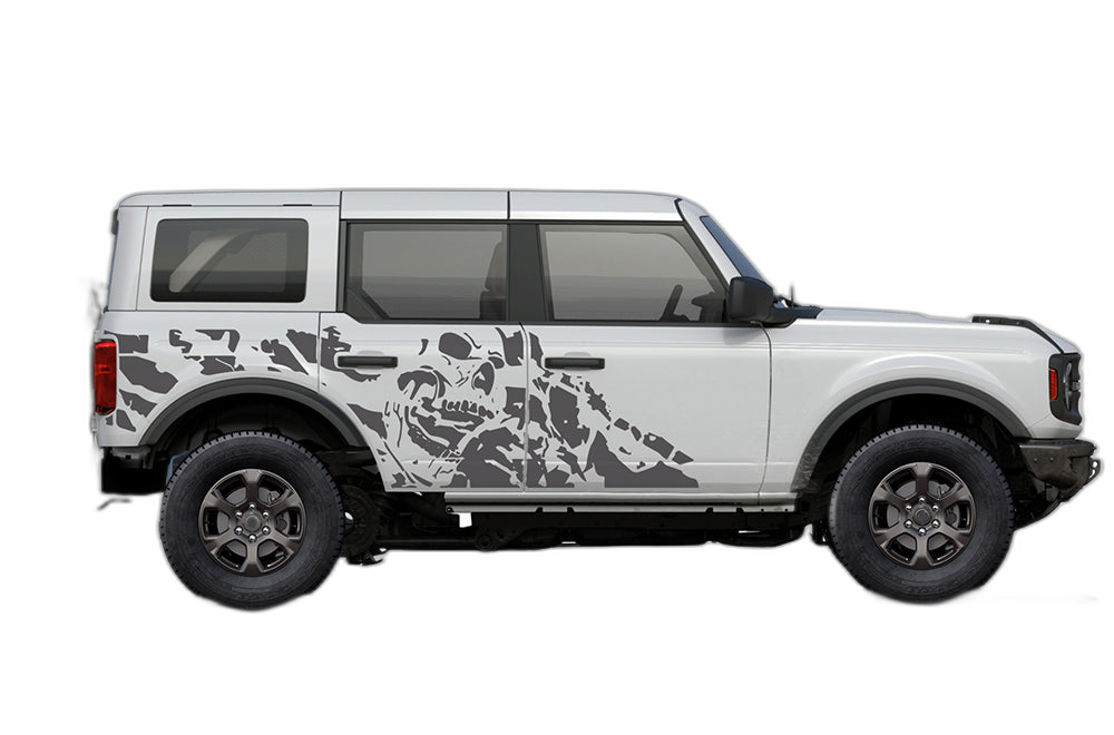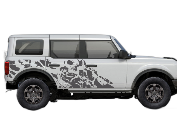 Transform your Ford Bronco with our nightmare side graphics. This aggressive, dark-themed design provides a bold look that sets your vehicle apart from the rest of the pack on the road and trail.