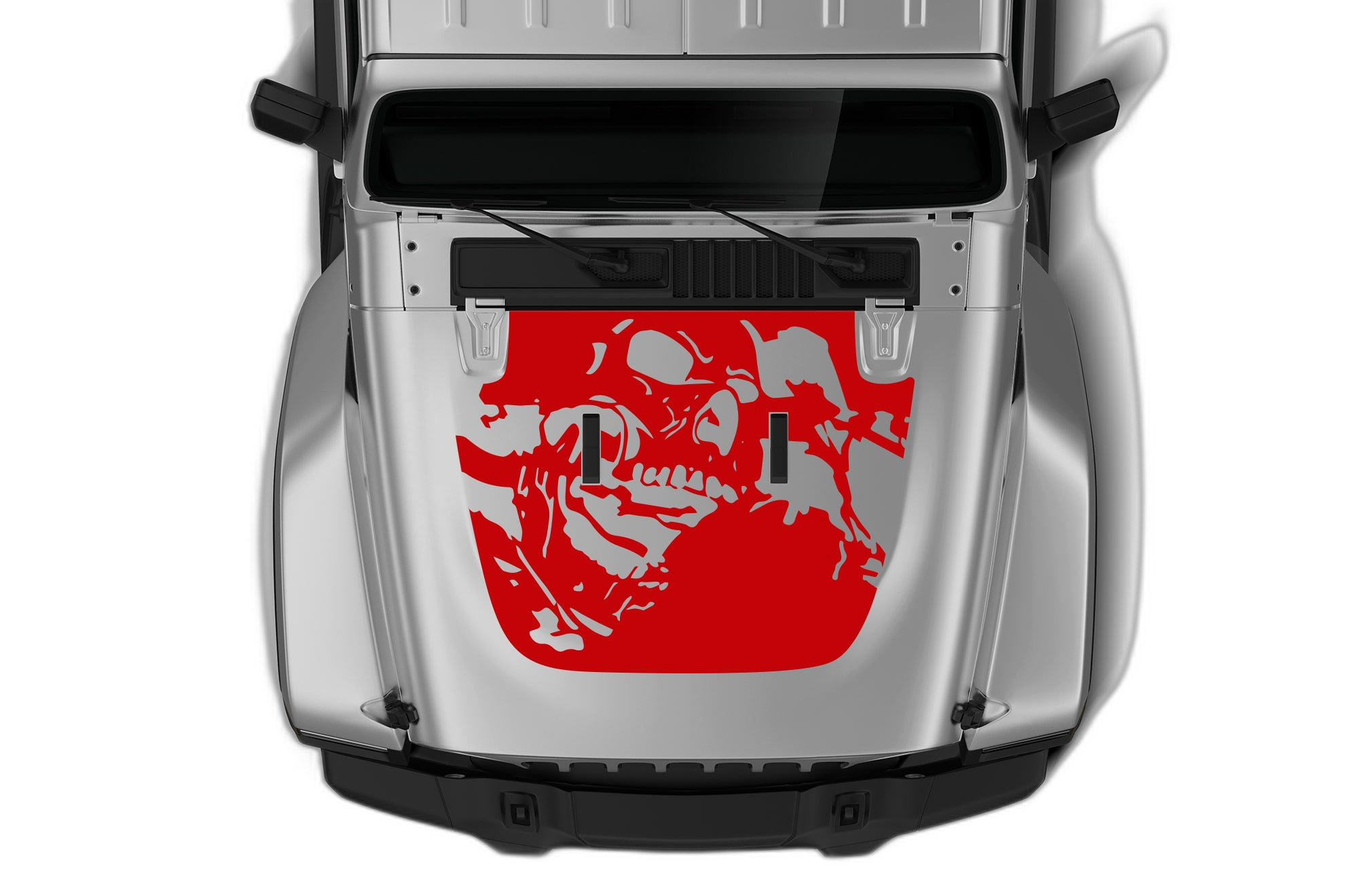 Unleash the aggressive potential of your Wrangler JL with these nightmare-style hood graphics. This bold, dark-themed decal is perfect for drivers who want their Jeep to look as tough as it performs.