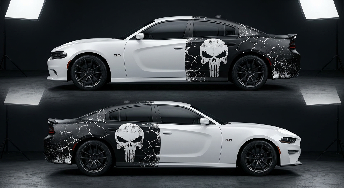 💀⚫ Punisher Crack Pattern Car Wrap