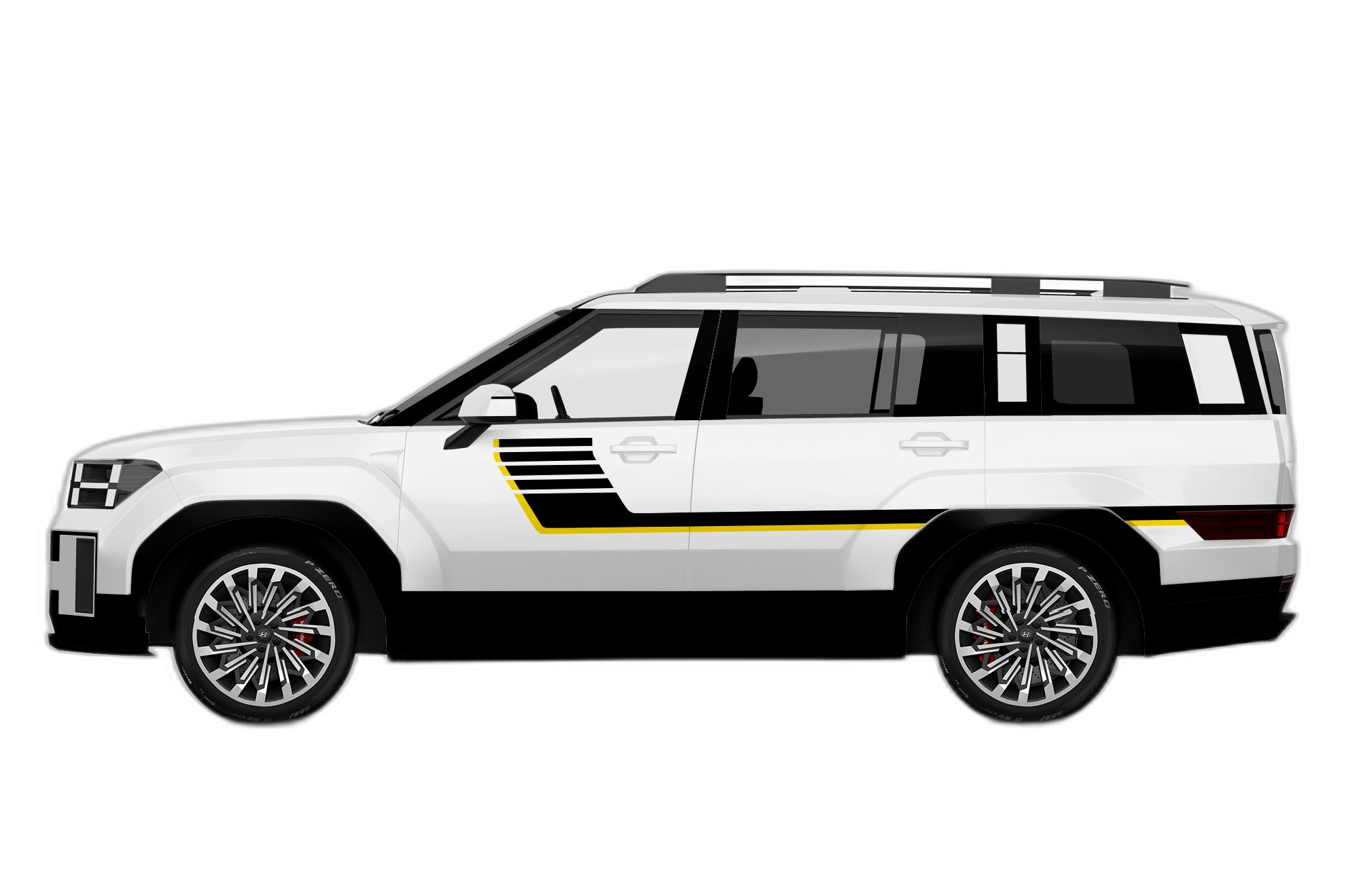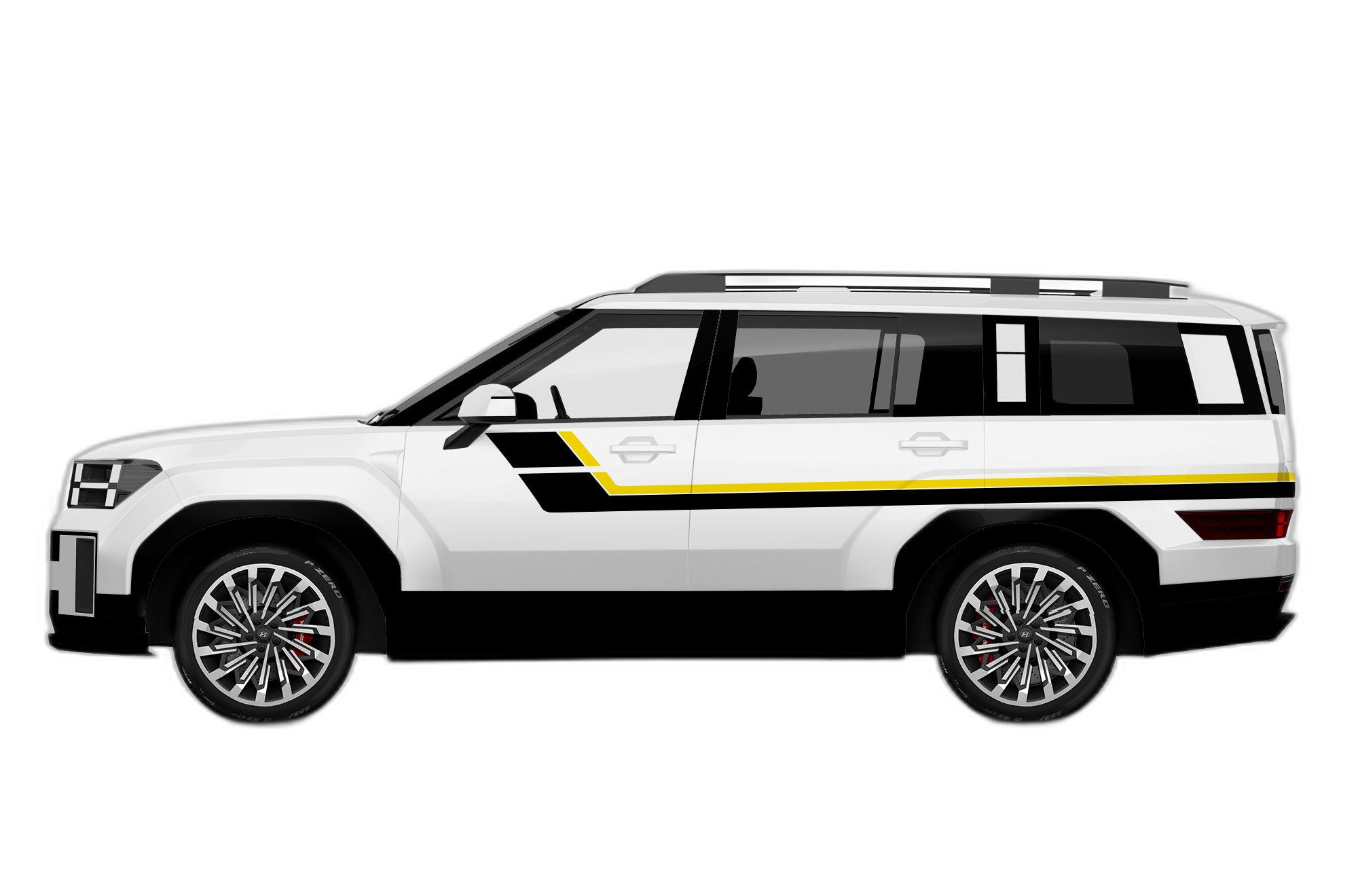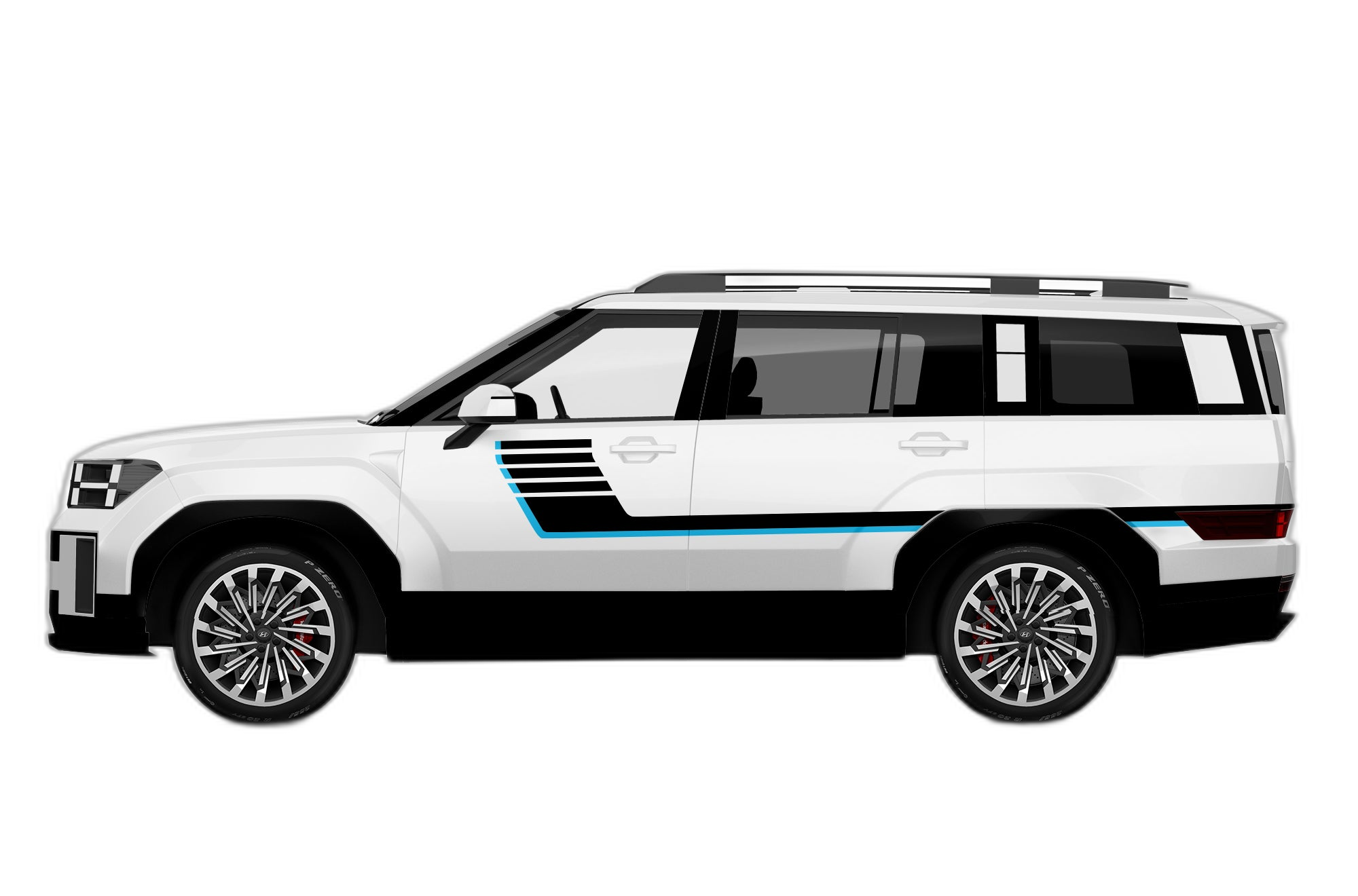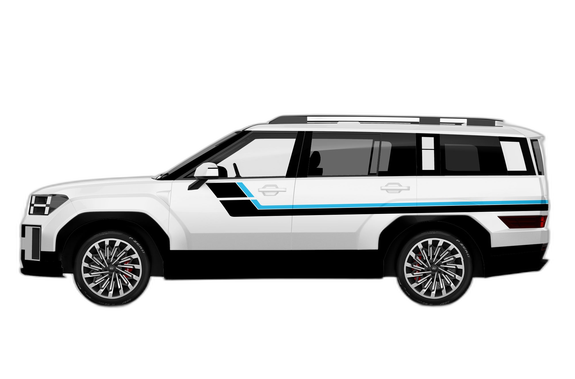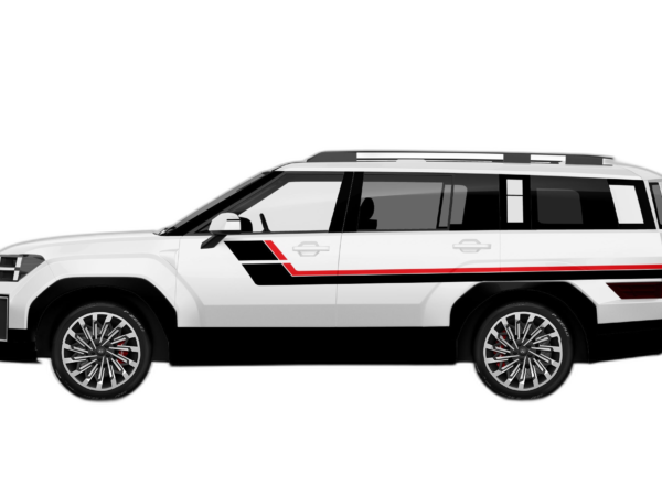 Channel the nostalgia of classic racing with these double center hash stripes. These decals add a clean, sporty look to the front profile of your 5th generation Santa Fe, emphasizing its contemporary silhouette.