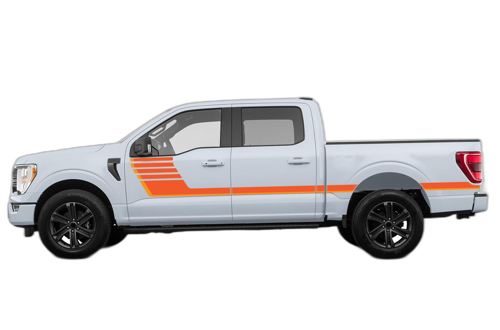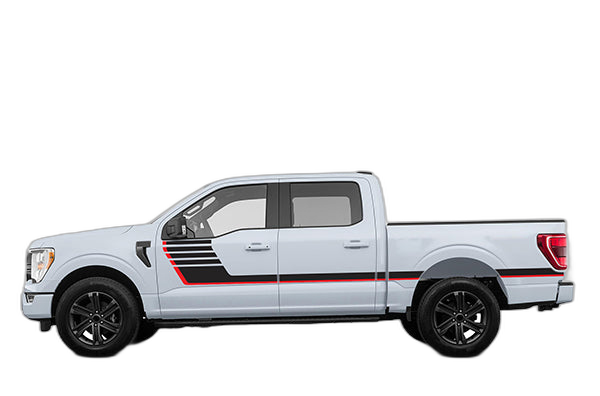 Give your Ford F150 a nostalgic upgrade with these retro-style double hash stripe decals. These stripes add a timeless, sporty aesthetic to your vehicle’s profile.