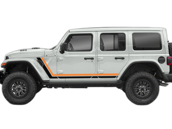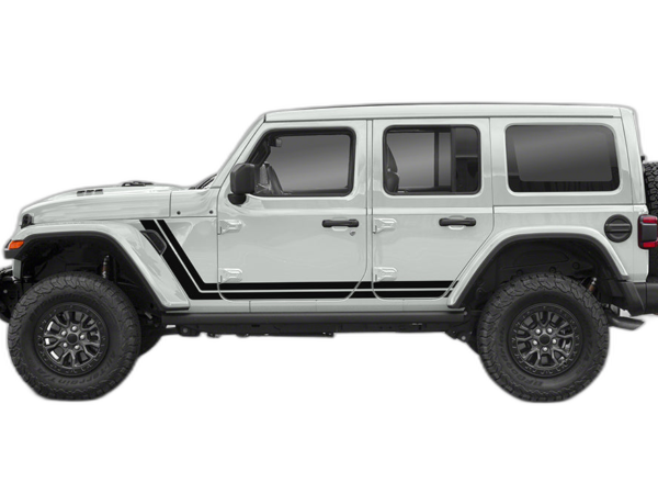 Enhance your Wrangler JL’s side profile with our retro-style double stripes. These graphics provide a clean, racing-inspired appearance that creates a sharp visual flow across your vehicle’s body.