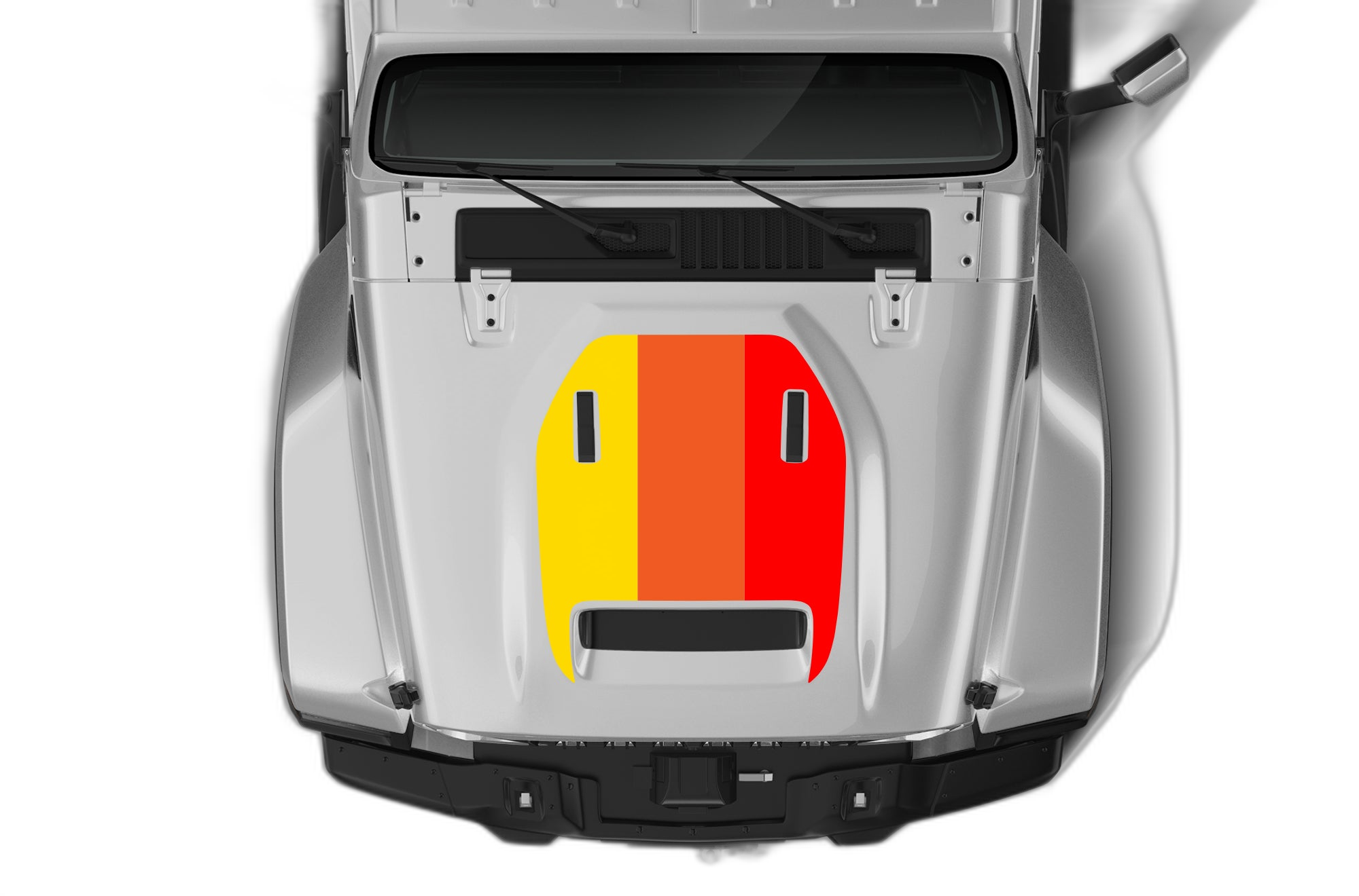 Retro style hood graphics decals compatible with Jeep Gladiator JT Mojave adds a bold custom styling touch to your Jeep Gladiator JT Mojave with a clean motorsport-inspired decal look. This design is intended for the listed fitment and works well for drivers who want sharper side profile styling without a full wrap. The graphic is suited for enthusiasts who value a strong visual upgrade, easy maintenance, and a finish that stands out on the street or at events. Always confirm your vehicle generation and prepare the surface correctly before installation for the best result. This product is a great option for refreshing the appearance of your build while keeping the install focused, practical, and visually aggressive.
