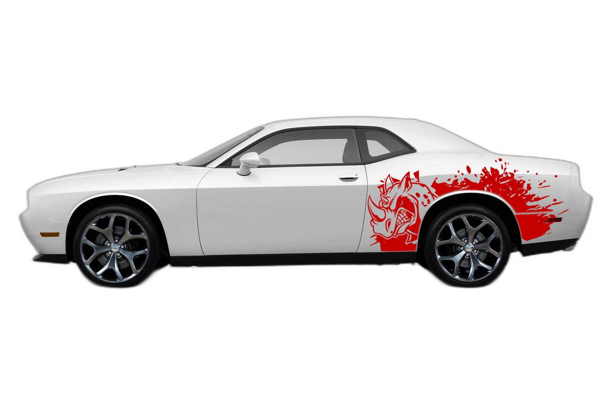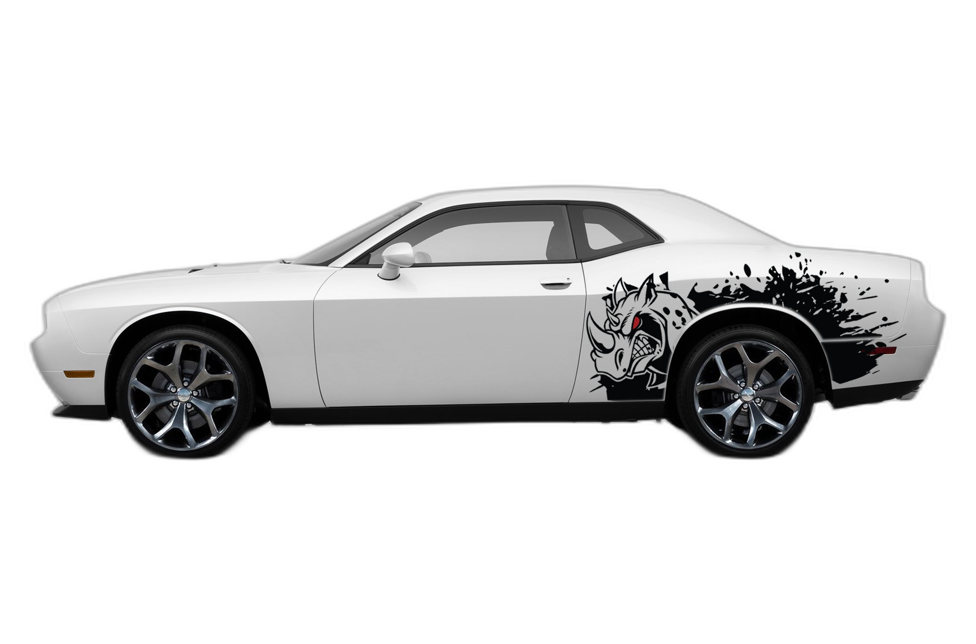 Set your Dodge Challenger apart from the pack with these powerful Rhino Hit side graphics, perfect for enthusiasts looking for a bold visual upgrade.